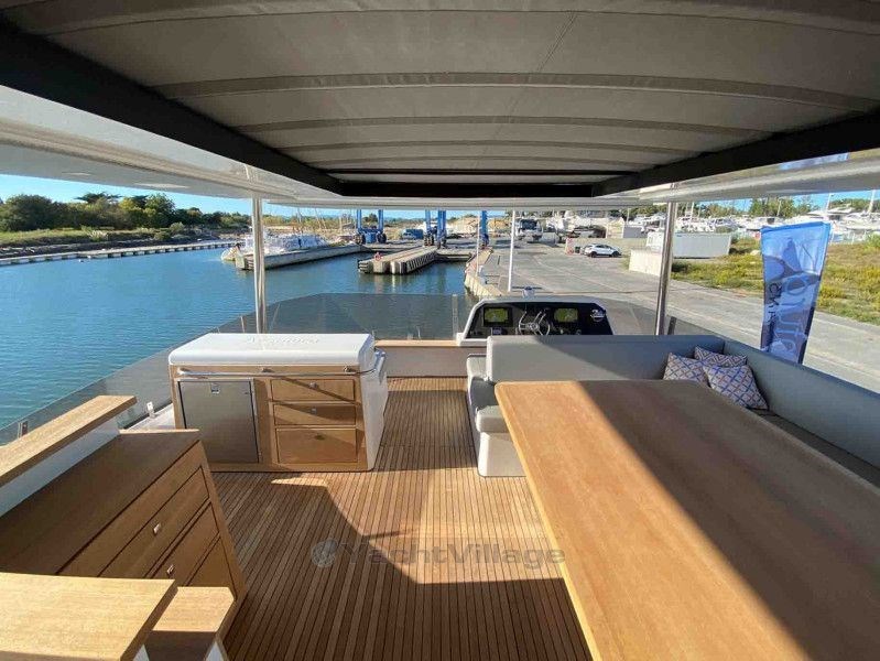 Dieser jüngste im renommierten LASTA Design Studio entwickelte AVENTURA 50 MY Power Kat verbindet schiffige Eleganz mit modernem und komfortablem Interieur. In der Standardversion mit einer Master- und zwei Gästekabinen bietet die AVENTURA 50 MY großzügigen, auf dieser Schiffsgröße einmaligen Lebensraum und komfortable Gästekabinen. Bis zu sechs Kabinen, alle mit eigenem Bad, sind möglich. Der geräumige Salon mit angrenzendem Innensteuerstand bietet neben einem U-förmiges Sofa, eine Küche mit viel Stauraum, US-Kühlschrank mit Eismacher, optionalem Weinkühler und Geschirrspüler. An Deck gibt es zwei Sitzgruppen, 27m² Fly Bridge mit Doppel-Sitzbank am Steuerstand, Essbereich, Sonnenliegen und komplett ausgestatteter Küche. Die Motorisierung mit 2x 320 PS oder 2x 440 PS mit max. 4000 Liter Dieseltanks ermöglicht Reisedistanzen bis zur Atlantikpassage.