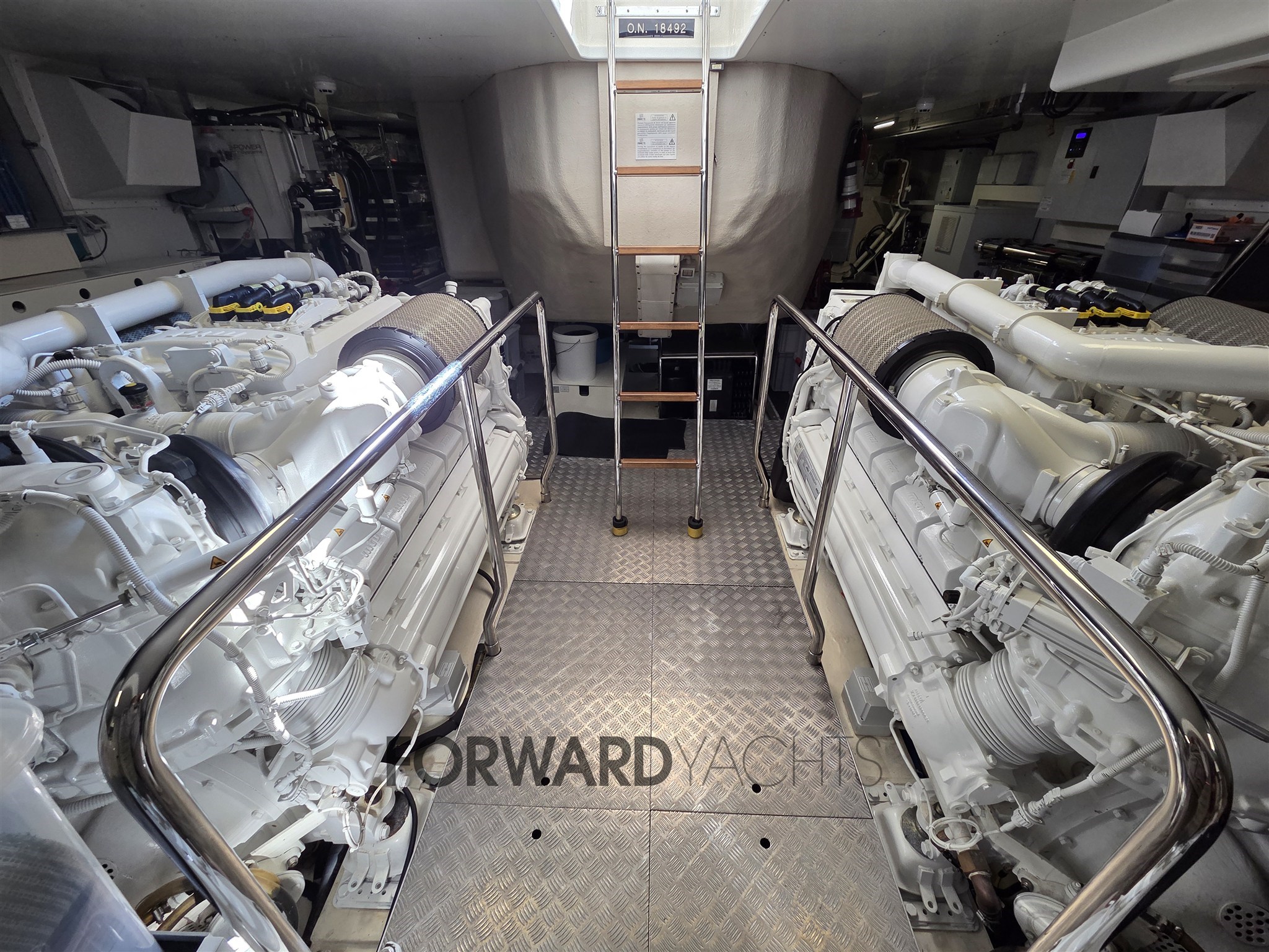 Das Boot ist mit 2 MTU V12-Motoren mit 1.948 PS ausgestattet und mit vielen Zubehörteilen und Extras ausgestattet, darunter: Flossenstabilisatoren, Bug- und Heckstrahlruder, Unterwasserlichter, Generatoren und vieles mehr....