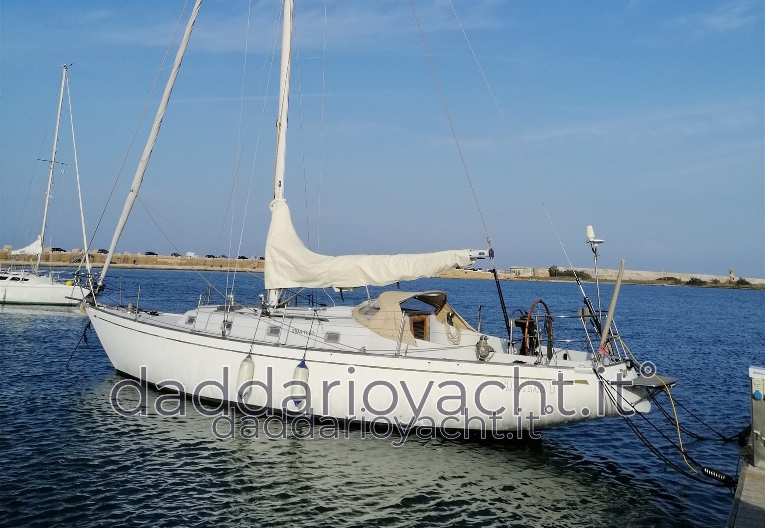 Sie ist eine der besten Kreationen der gleichnamigen Werft. Ideal zum Cruisen und schnell im Rennen. Die Alpa 11.50 wurde 1967 von der Werft in Offanengo (Cremona) aus Fiberglas gefertigt und zeichnet sich durch klassische Linien aus, mit starkem Bug- und Heckschub und einer niedrigen maximalen Breite. Es handelt sich um eine solide und komfortable Schaluppe, die an der Mastspitze aufgetakelt ist und deren Deckshaus im Vergleich zum Decksniveau hoch genug ist, um eine Höhe unter Deck von 1,90 Metern zu gewährleisten.