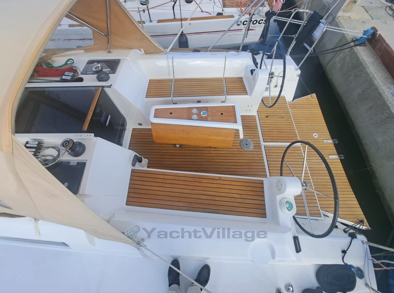 Cockpitboden und Sitze mit Teakholzbelag
