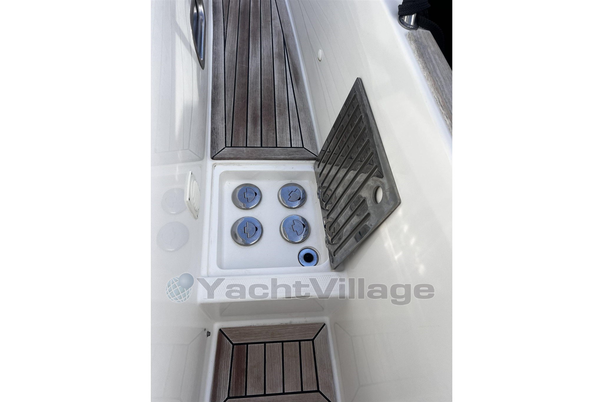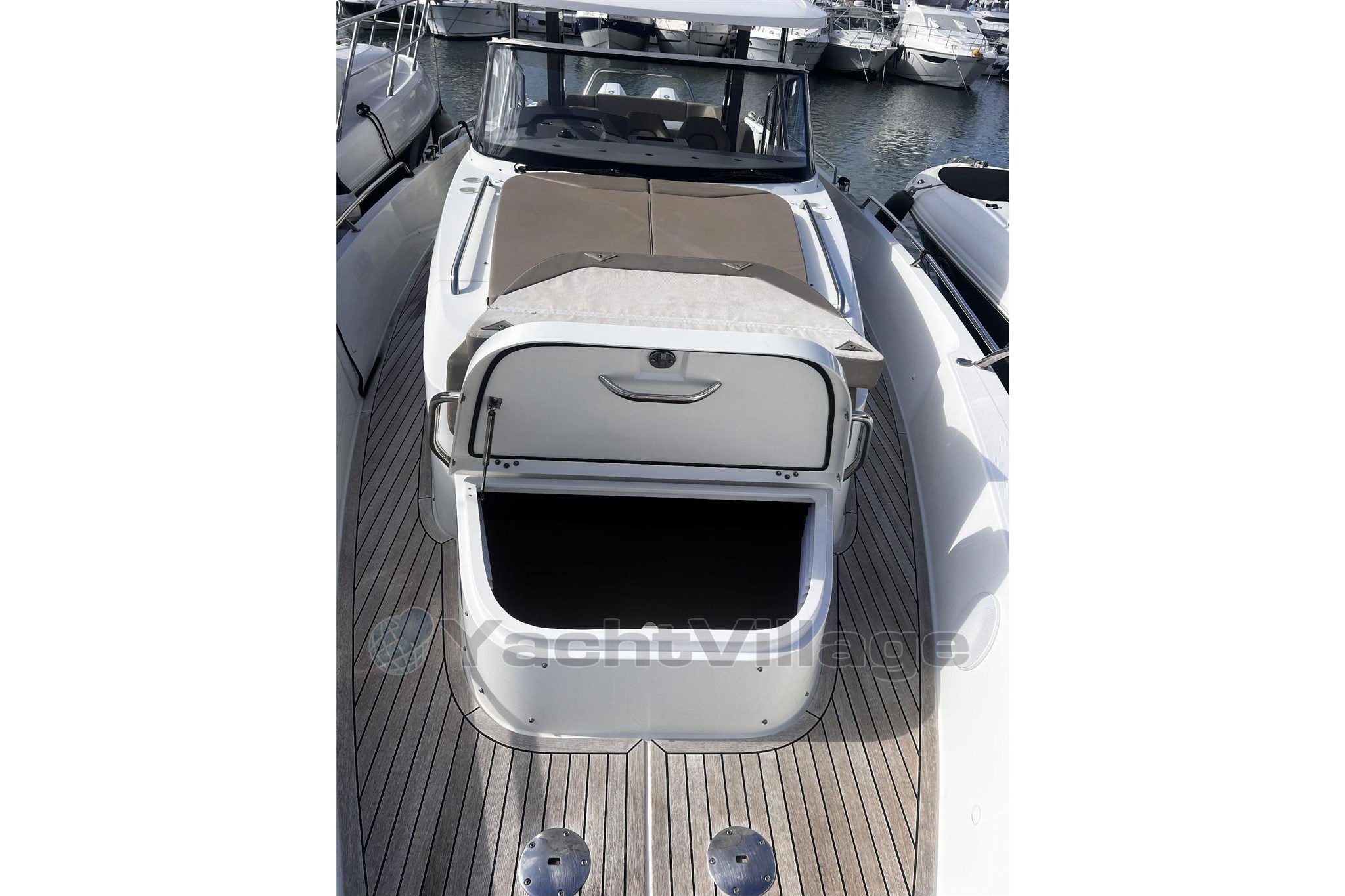 Motores: 2 × Mercury Verado V8 de 300 CV — incluye hélices de acero inoxidable — color blanco