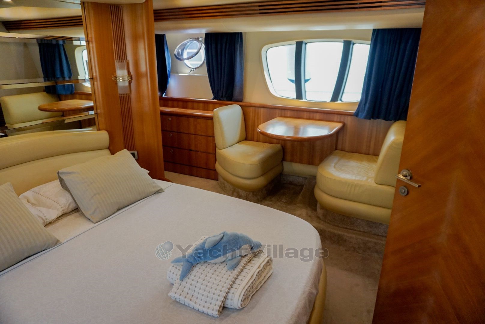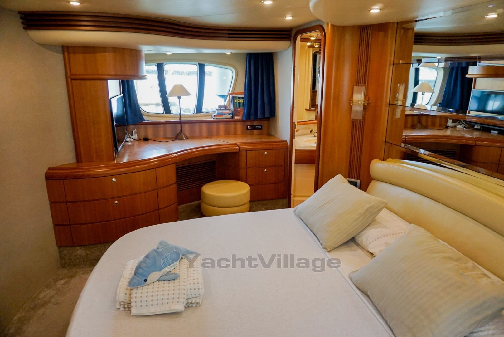 4 cabins, 9 berths, 5 bathrooms. MAN V12-1360 engines 2 x 1350 HP with 1600 hours. Bow and stern thrusters. Two generators. Full SIMRAD electronics renewed in 2020. Galley fully refitted in 2019. New air conditioning system (2021). Watermaker 250 L/h (2019). New crane (2020). Sunbathing areas, bimini, underwater lights, teak deck.