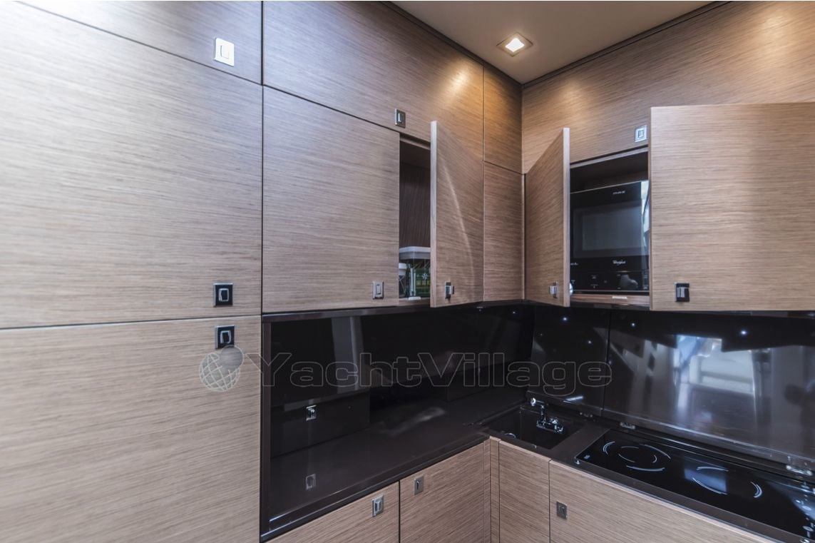 The practical layout of the wheelhouse with its four helm stations allows for great manoeuvrability, while the convivial spaces, both inside and outside, are ideal for hosting family and friends. These generous spaces are perfect for spending long days at sea in a luxurious setting, while enjoying the comfort and friendliness that this yacht offers.