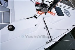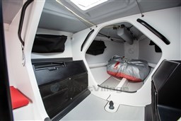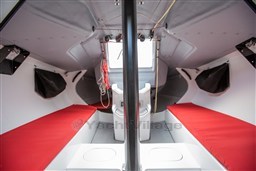4 berths. 1 manual toilet. Carbon mast, boom, spreaders and tiller. B&G H5000 electronic instrumentation with mast display. Ubi Mayor deck equipment. Rod rigging. Mast jack. PBO forestay with Aero Tuff Luff. Raptor cockpit pad. Trailer.