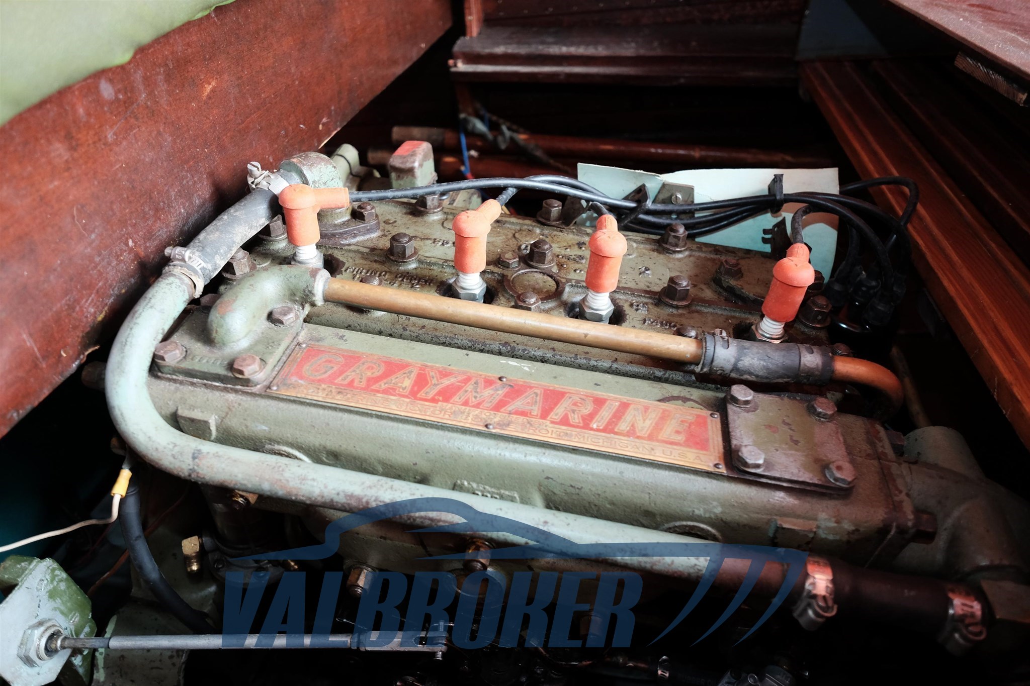 Vintage Mahogany motorboat. Excellent state of preservation, recently redone in marine plywood. Engine GRAY MARINE 620, 60 HP, inboard. Overhauled in 2023.