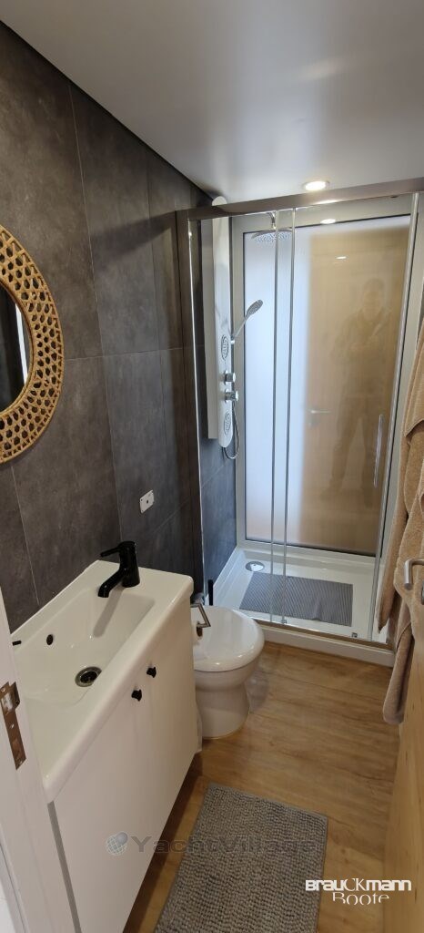With a length of just under 12 metres and a generous width of 4.50 metres, you will experience a feeling of space that will make you arrive immediately. Large areas, well-thought-out furnishings and high-quality materials create an ambience that is more reminiscent of a stylish apartment than a classic boat.