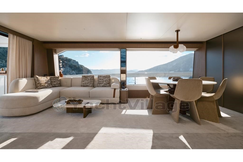 El exclusivo sistema Deck2Deck™ amplía la plataforma de baño para crear una terraza al nivel del mar, ideal para disfrutar el Mediterráneo con total libertad. Grandes ventanales, un flybridge generoso y una distribución que maximiza el espacio hacen del Fly 82 un auténtico yate de lujo pensado para vivir a bordo.