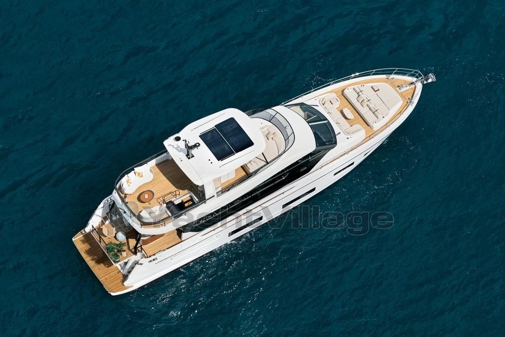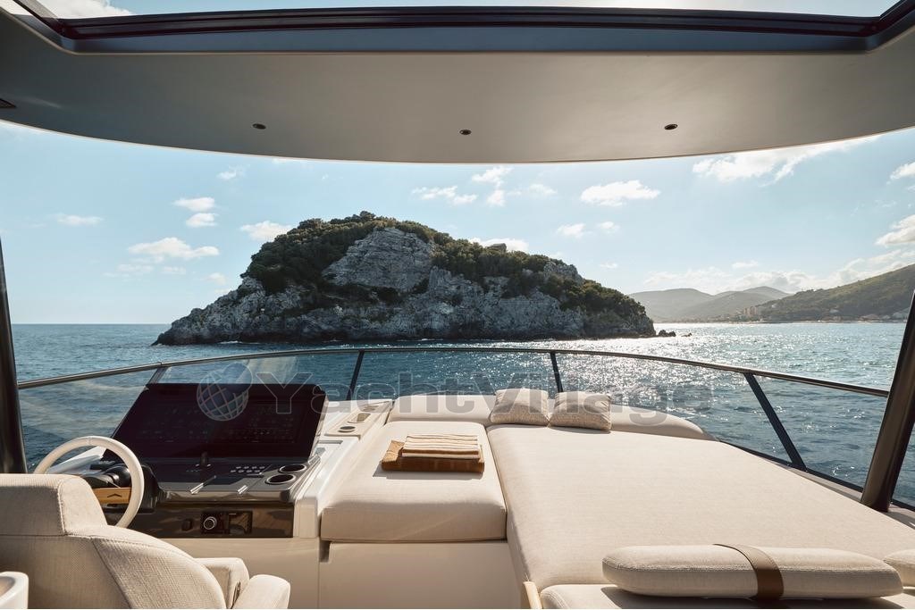 The exclusive Deck2Deck™ system extends the bathing platform to create a sea-level terrace — the ideal space to enjoy the Mediterranean in complete freedom. Expansive windows, a generous flybridge, and a layout that maximises every inch of space make the Fly 82 a true luxury yacht designed for life on board.