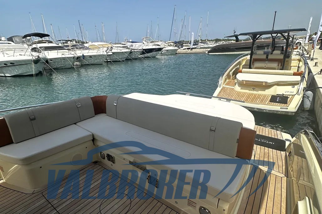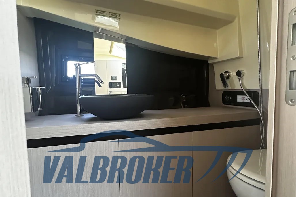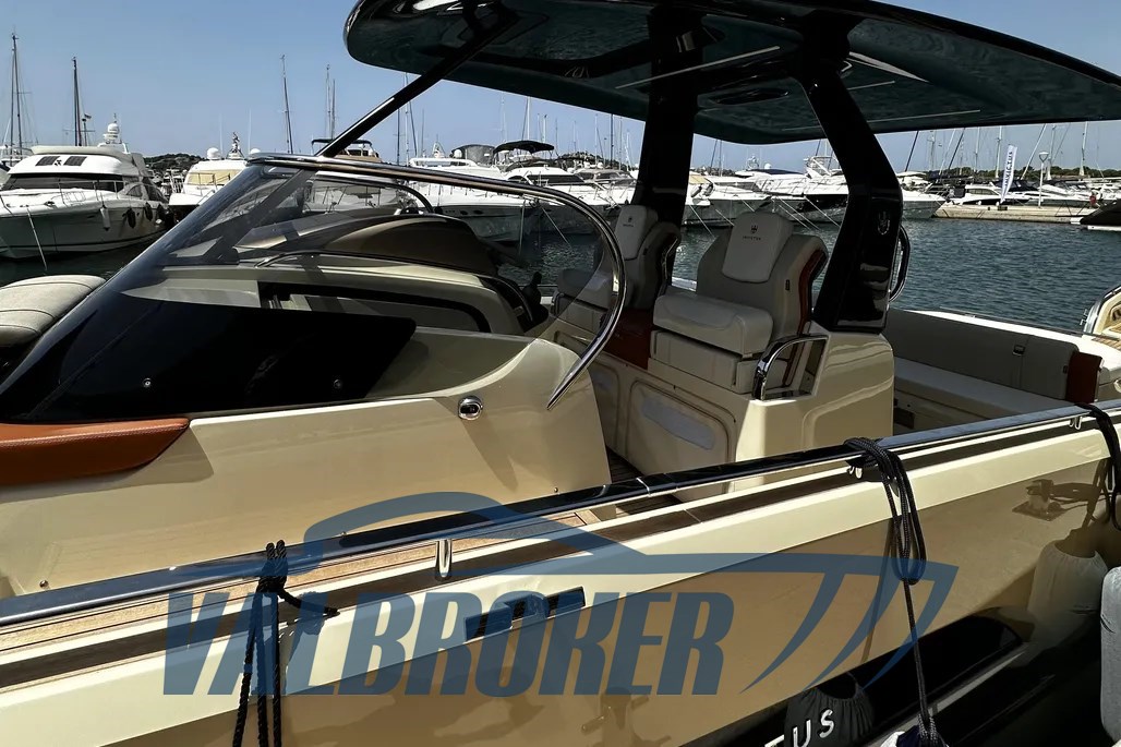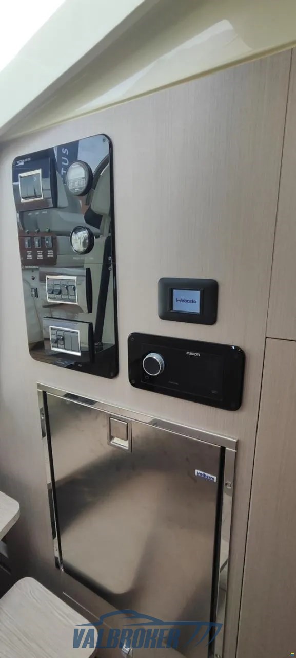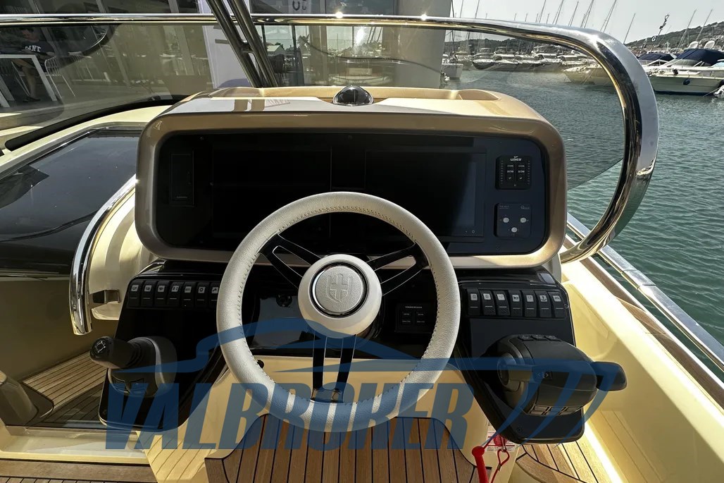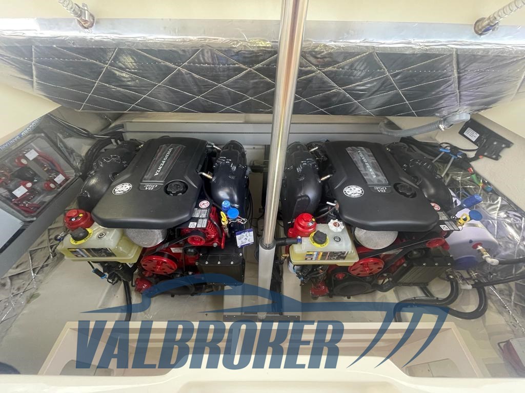 DEMO boat, only 65 hours of motoring!! Available for immediate delivery. Engines 2xVolvo Penta V8 350 HP petrol. Engine warranty to be activated. FULL OPTIONAL: 10000 BTU hot/cold air conditioning, bow thruster, bimini with carbon poles, special Vanilla Sea color, carbon hard top, Volvo control joystick and autopilot!! Possibility of exchange.