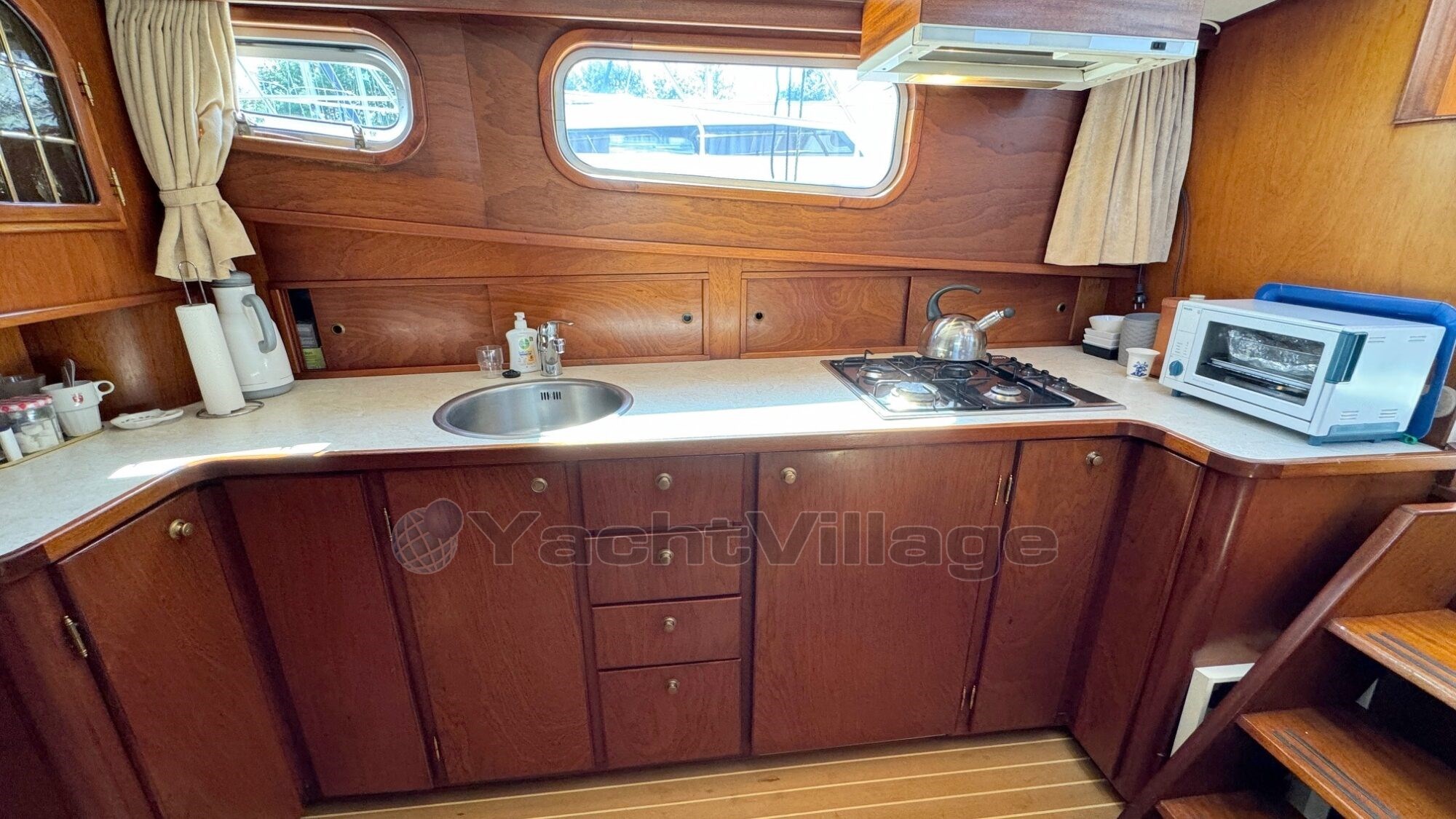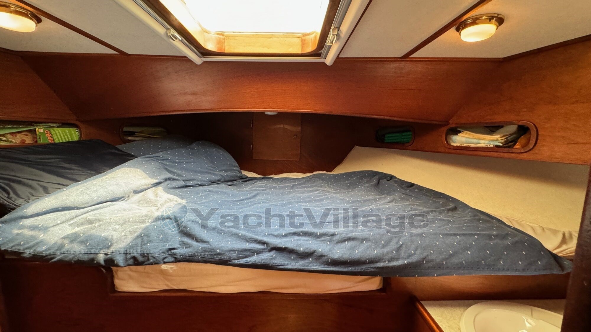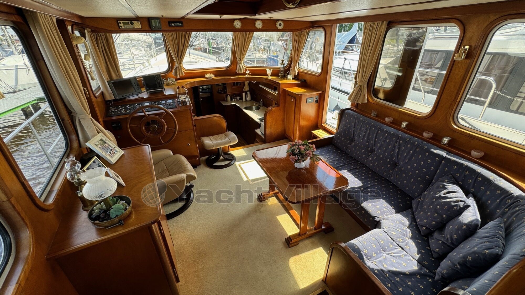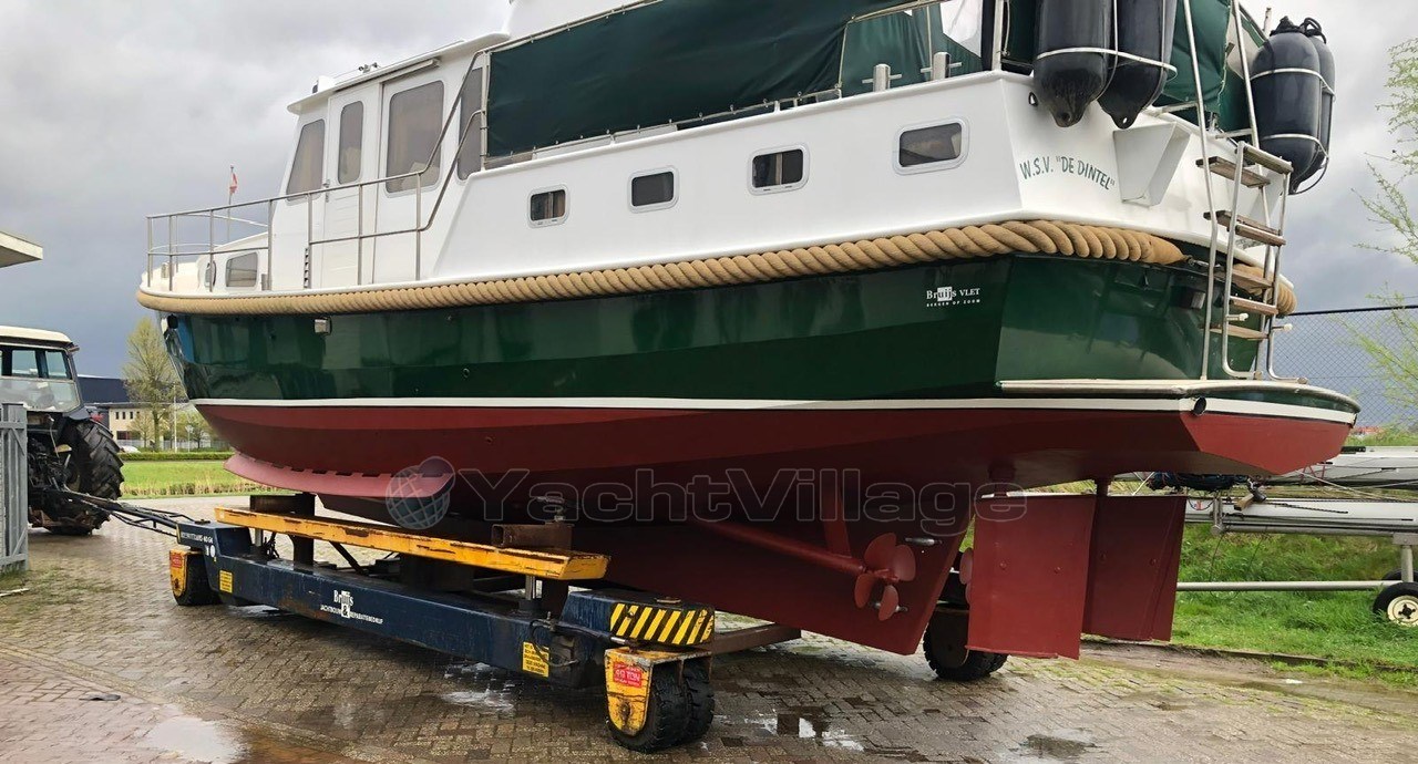 Spanning (12), Spanning (24), Spanning (230), Walstroomkabel, Boegschroefaccu (2 x 230 Ah 2025), Generatoraccu (85 Ah), Aggregaat (Mastervolt 3.5 kVA in fluisterkist), Dynamo, Aandrijving (Schroefassen), Schroefas smering (Watergesmeerde schroefassen), Besturing (Dubbele hydraulische besturing), Uitlaat (Natte uitlaten), Ramen (Aluminium ramen, dubbel glas, met mahoniehouten raamafwerking, meerdere ramen zijn aan vervanging toe (lekken tussen de twee dubbele ramen)), Materiaal (staal), Rompvorm (multi-knikspant), Betimmering (Mahonie massieve betimmering, vloer nieuw 2025), Bekleding (Blauwe stoffen bekleding), Voltage (12/24/230V), Walstroomkabel, Boegschroefaccu (2 x 230 Ah 2025), Batterij monitor (Mastervolt), Aggregaat (Mastervolt 3.5 kVA in fluisterkist), Dynamo, Temperatuurmeter, Oliedrukmeter, Dieseltankmeter, Watertankmeter, Vuilwatertankmeter, Navigatieverlichting, Hoorn, Dek (Staal met antislip gangboorden met antislip geschilderd 2025), Handrailing (RVS), Bolders (RVS), Mast (Aluminium mast klapbaar), Dekwaspomp, Fenderhouders (RVS), Landvasten, Stootrand (Kabelaring en kopleguaan), Verfwerk (2023 2-componenten systeem), Gasbun, Waterpomp, Hydrofoor, Stahoogte salon (2,00 m), Stahoogte natte cellen (1,90 m), Stahoogte voorkajuit (1,90 m), Bed master cabin (1,50 x 2,00), Bedden in gasthut (2,30 x 2,00)