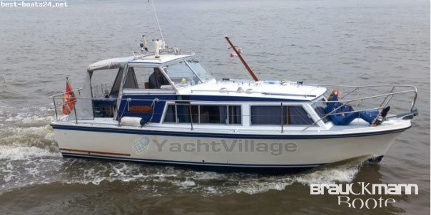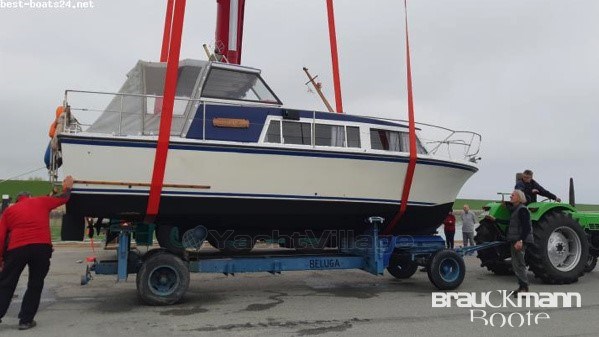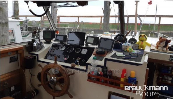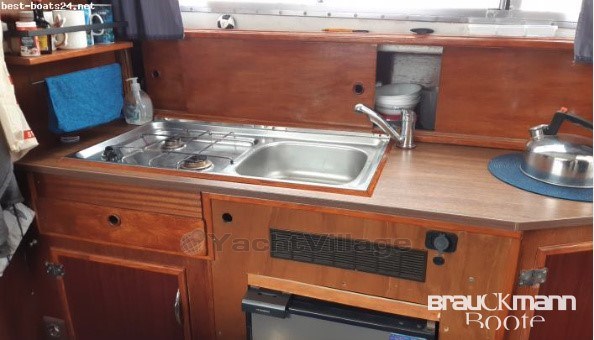 saloon, wheelhouse, indoor cab, stove gas 2-burner, sink, refrigerator, refrigerator el., toilet manual, fishfinder, depth sounder, compass, GPS, wind gauge, VHF radio, shore power supply, battery main switch, searchlight el. adjustable, anchor, bilge pump el., battery, anchor with chain, battery charger, searchlight, anchor box, bilge pump, swimming ladder, stern basket, bilge pump electric, cockpit speakers, flat screen TV, radio, railing, bilge pump, fire extinguisher, upholstery covers, cockpit carpet, other extras, bow pulpit, stern basket stainless steel, equipment carrier, bilge pump mechanical, TV antenna, upholstery covers fabric, incl. trailer unbraked