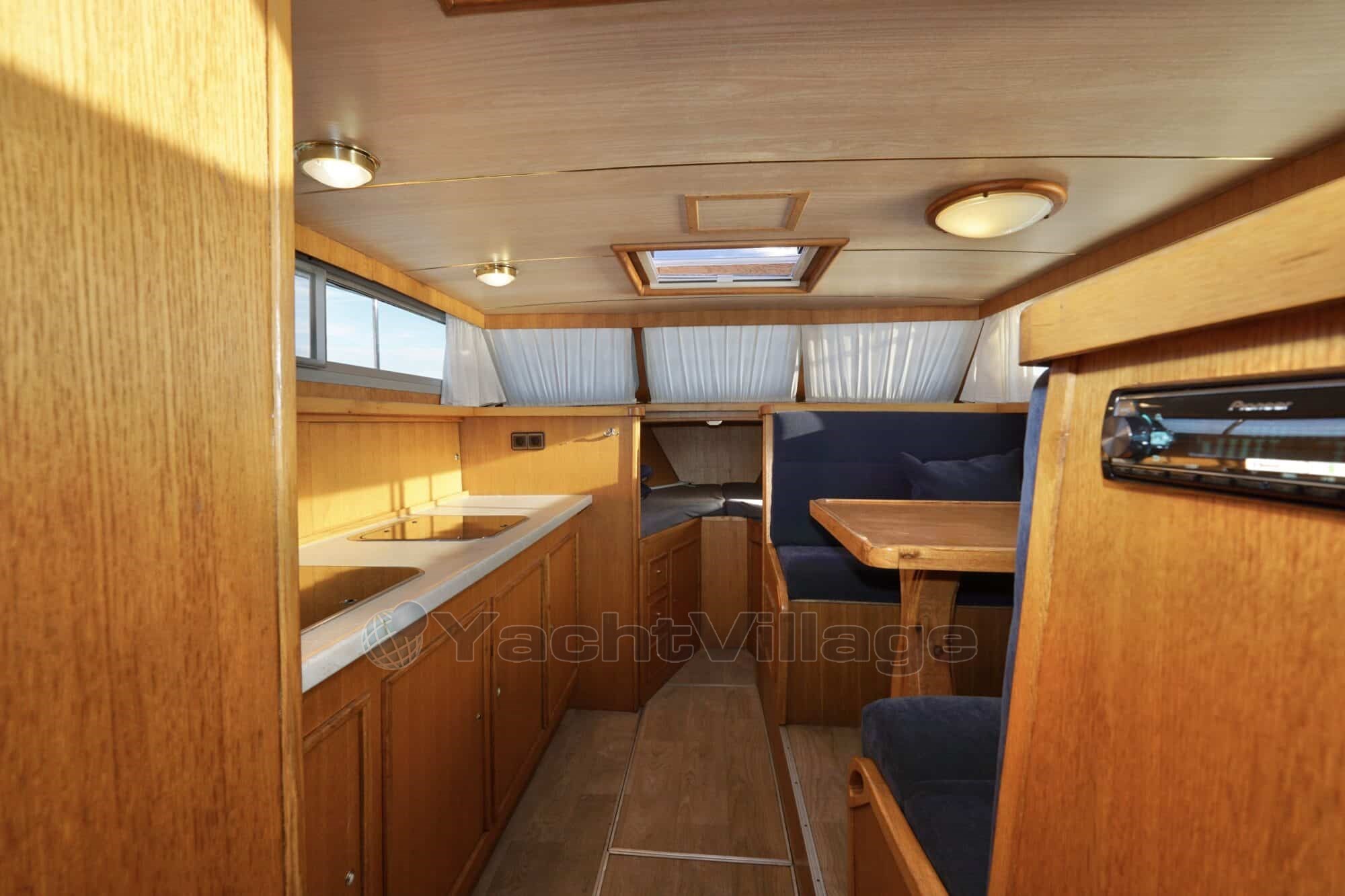 Spanning (12), Spanning (24), Spanning (230), Walstroomkabel, Boegschroefaccu (2 x 180 Ah), Dynamo (12V en 24V), Scheidingstrafo (Victron), Aandrijving (Hydraulische keerkoppeling met Python drive), Schroefas smering (Watergesmeerd), Besturing (Hydraulische dubbele besturing), Uitlaat (Natte uitlaat met kimkoeling), Ramen (Aluminium ramen, enkel glas, licht getint), Materiaal (staal), Rompvorm (knikspant), Betimmering (Massief eiken betimmering, vloeren met PVC), Bekleding (Blauwe bekleding met lichte gordijnen 2010), Voltage (12/24/230V), Walstroomkabel, Boegschroefaccu (2 x 180 Ah), Dynamo (12V en 24V), Scheidingstrafo (Victron), Temperatuurmeter, Oliedrukmeter, Amperemeter, Dieseltankmeter, Watertankmeter, Vuilwatertankmeter, Navigatieverlichting, Dek (Staal met antislip), Handrailing (RVS), Bolders (RVS), Mast (Hout, klapbaar), Dekwaspomp, Fenderhouders (RVS), Landvasten, Stootrand (Staal), Verfwerk (2-componenten systeem romp Epifanes 2025 en opbouw 2025 De IJssel), Gasbun, Boiler (40 liter in Kabola), Hydrofoor, CE (Vrijgesteld), Stahoogte salon (1,90 m), Stahoogte natte cellen (1,75 m), Stahoogte voorkajuit (1,85 m), Bed master cabin (1,30 x 2,15), Bedden in gasthut (2 x 0,60 x 2,00)