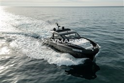 special all-black colour: hull and deck Gelcoat RAL 7030, customised painting of console and hardtop, customised tubulars