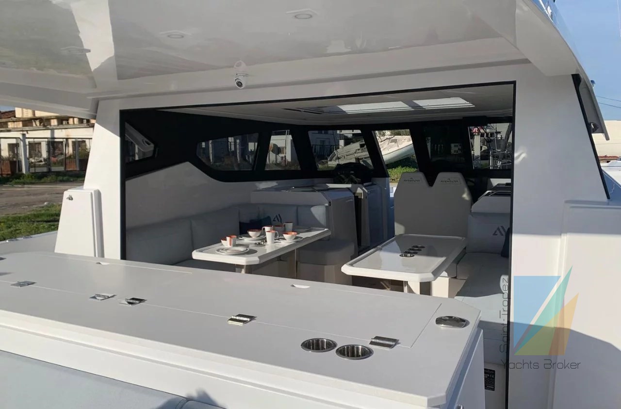 The AVENTURA 38SC is a new motor sport catamaran with an open-plan living space, tastefully designed to be luxurious and practical. This ingenious design provides a seamless transition between indoor and outdoor living, with the aft decks extending to create an even more spacious and welcoming environment.