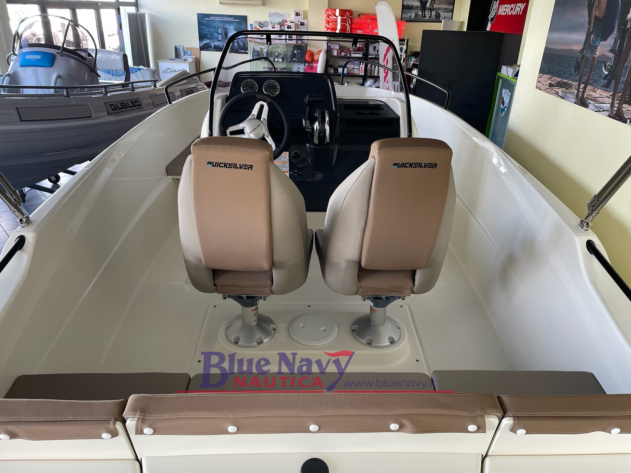 Official dealer for Tuscany of QUICKSILVER and NAVAN - Blue Navy Nautica - offers for sale the new boat QUICKSILVER Activ 555 OPEN of 5.84mt f.t.; The ideal boat for fishing and relaxing days spent outdoors. It can carry up to 6 people and The sleek design and intelligent use of available space make it a versatile solution, able to meet the needs of a wide audience.