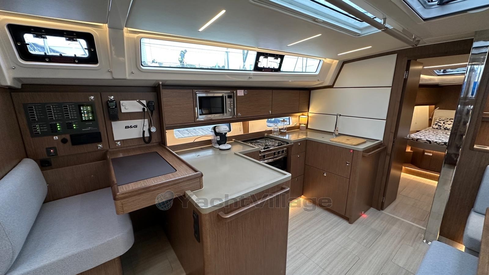 Diese Bavaria C46 HARDTOP ist mit Solarmodulen auf dem Hardtop, einem Rollgrossegel einem leistungssärkeren Motor mit elektronischer Motorsteuerung , Lithium-Batterien und dem Premium-Navigationspaket ausgestattet, der 12-Zoll-Kartenplotter mit Anzeigegeräten an den Steuerständen und im Niedergang umfasst. Zu den weiteren Highlights zählen elektrische Ankerwinden, ein Bugspriet und eine Vielzahl zusätzlicher Ausstattungsmerkmale.Im Innenraum wird die stilvolle Ausstattung aus amerikanischem Nussbaumholz durch umfangreiche Extras ergänzt, die ein voll ausgestattetes und komfortables Törnerlebnis gewährleisten.