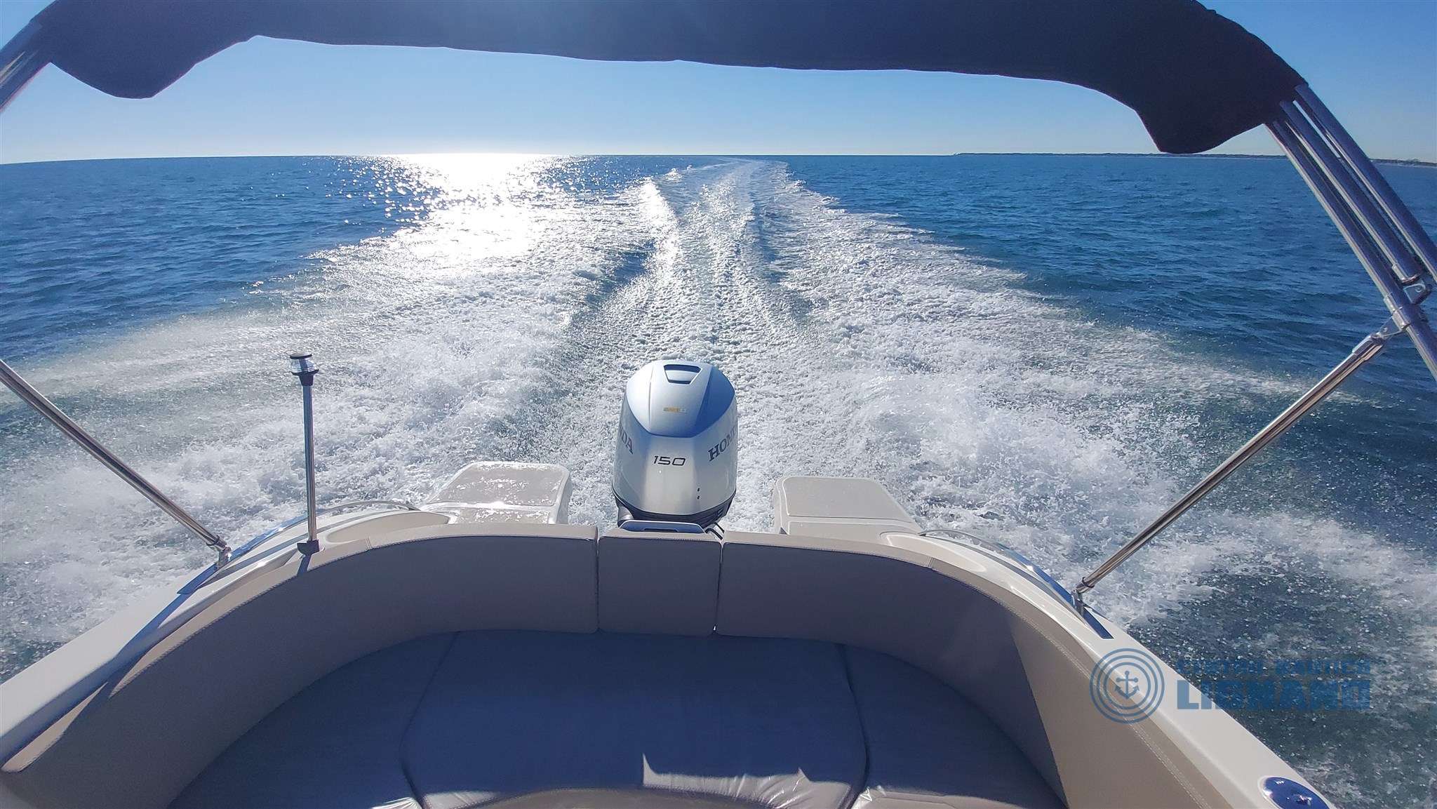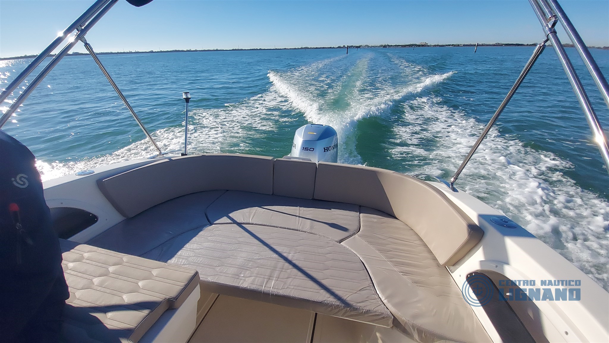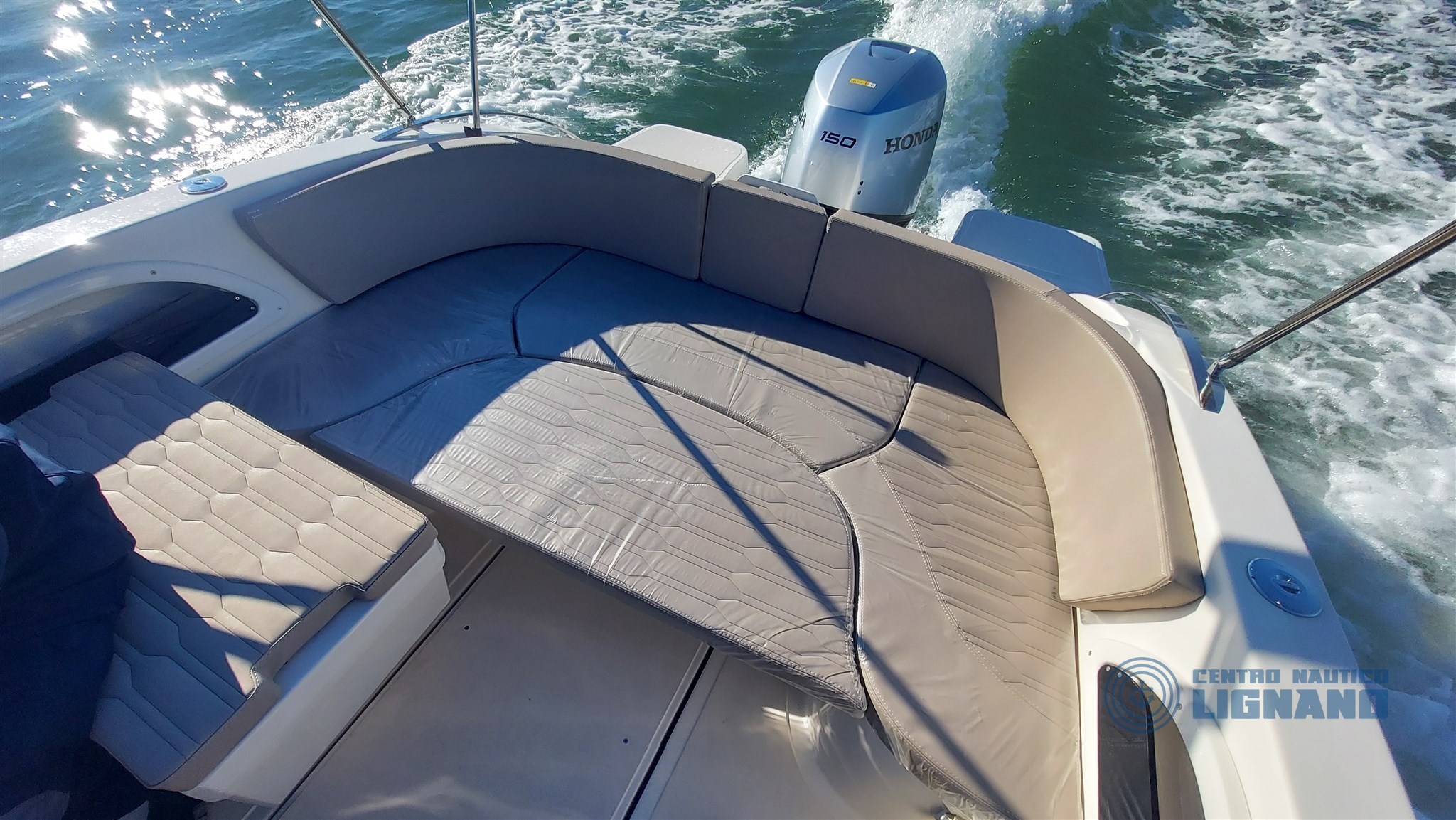 Eolo 6.4 EL 2026 new with Honda Marine BF150 silver outboard engine, stainless steel propeller, complete with beige cushions with Lamborghini texture, 96 lt fuel system, 39 lt water and shower system, black 3-arch stainless steel awning, manhole, synthetic teak platforms (Evodeck), hydraulic steering, stern platforms with climbing ladder, regulation navigation and anchor lights, courtesy lights in the cabin, white hull, bow roller, manual anchor, 12V socket, 12V electrical system with panel, compass, chemical toilet, new Honda Marine BF150 Silver Aquamarine outboard, first SVH85 instrument. Brand new boat ready for delivery! Boat 2026 with 2 years warranty and 5 years on the engine from the date of invoice. Centro Nautico Lignano official Eolo Marine dealer.
