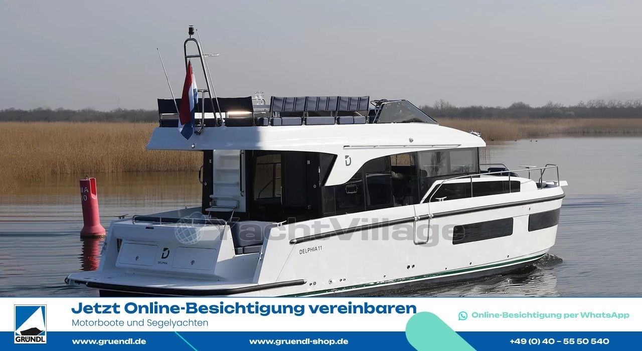 Delphia Yachts Delphia 11 Flylounge is a 10.77 meters Motorboat built in 2025. Moored in (Germany) is available for sale at 399,900 EUR on YachtVillage.net. Boat, Boats, Boat For sale, Boats New, Motorboat For sale, Motorboat New, Motorboats For sale, Motorboats New, Ranking 6 / 10