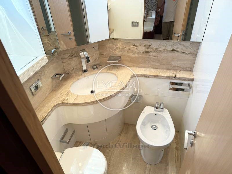 The lower deck is dedicated to the sleeping area as follows: full-beam owner's cabin in the middle of the hull with relaxation corner, office area, dressing room and private bathroom; 2 mirrored guest cabins with flat beds and retractable pullman beds while in the bow the VIP cabin. All are equipped with en-suite bathrooms. At the extreme bow, through a manhole from the main deck, there is access to the crew room consisting of a cabin with 2 berths and a toilet.