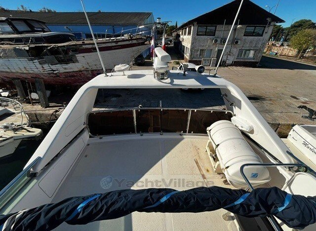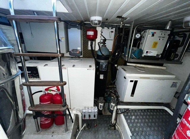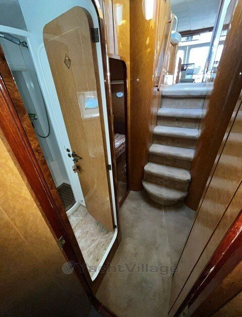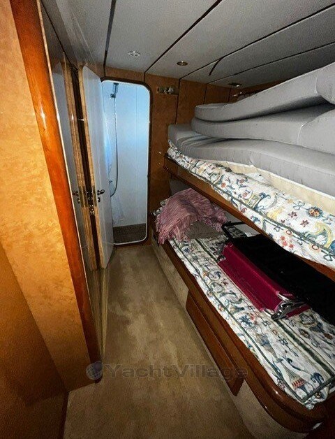 owner's cabin, cabin, saloon, inside cab, flybridge, marinero cabin, bow cabin, stove gas 4-burner, stove electric, refrigerator, refrigerator el., sp. Toilet manual + sink + shower, depth sounder with daughter, sumlog with daughter, GPS with daughter, chart plotter, autopilot, sun sail ? Flybridge, flybridge cover, cockpit cover, shore power supply 220 volts, generator diesel, battery charger? Bow windlass el., Battery, Battery main switch, Generator, Deck hatch, Hot water system, Bow thruster, Underwater paint, Wetbar, Trim tabs el./hydr., Gangway electric, Device, Swimming ladder, Pressurized water system, Bilge pump electric, Heating Air conditioning, Other Extras,