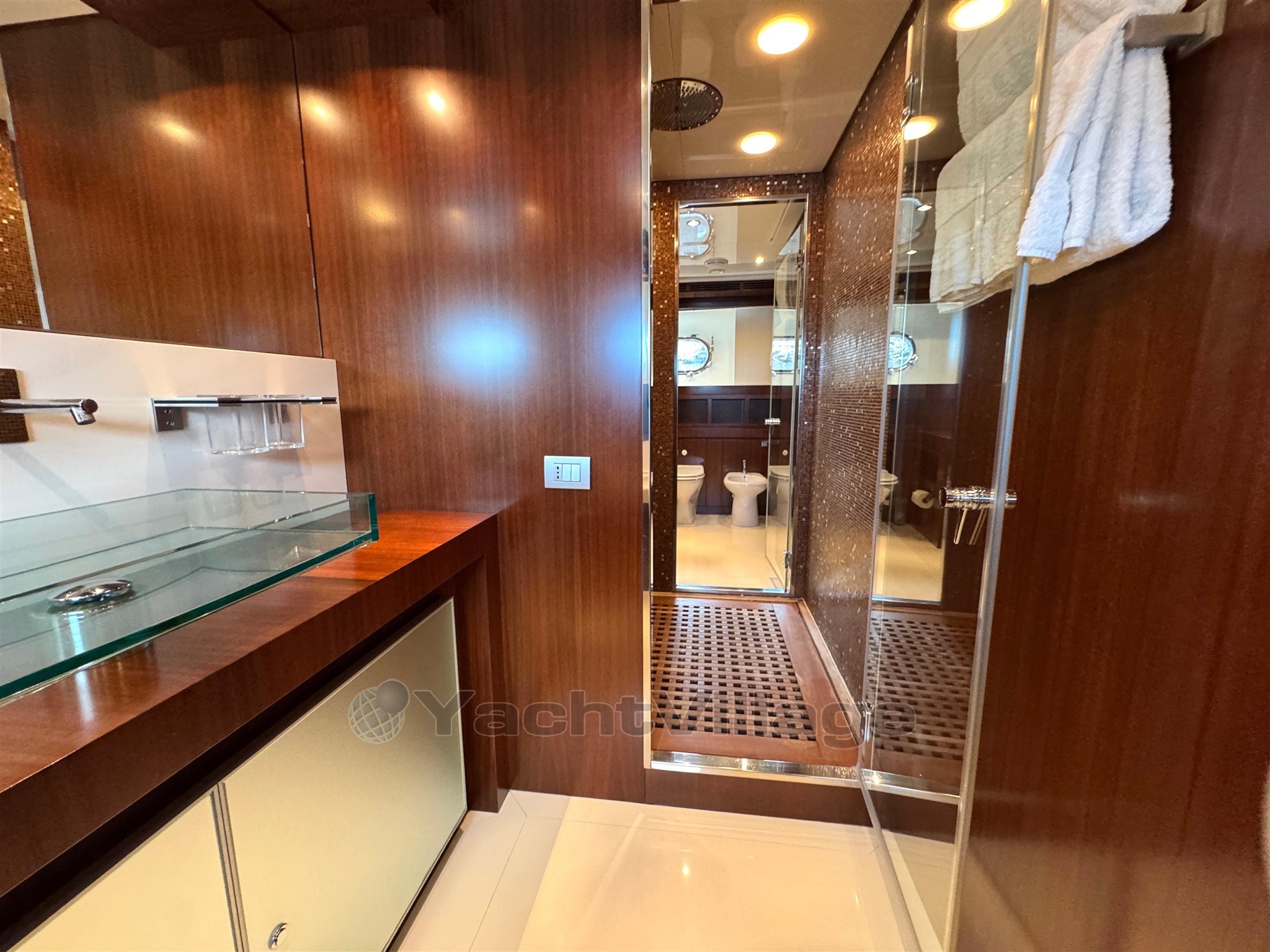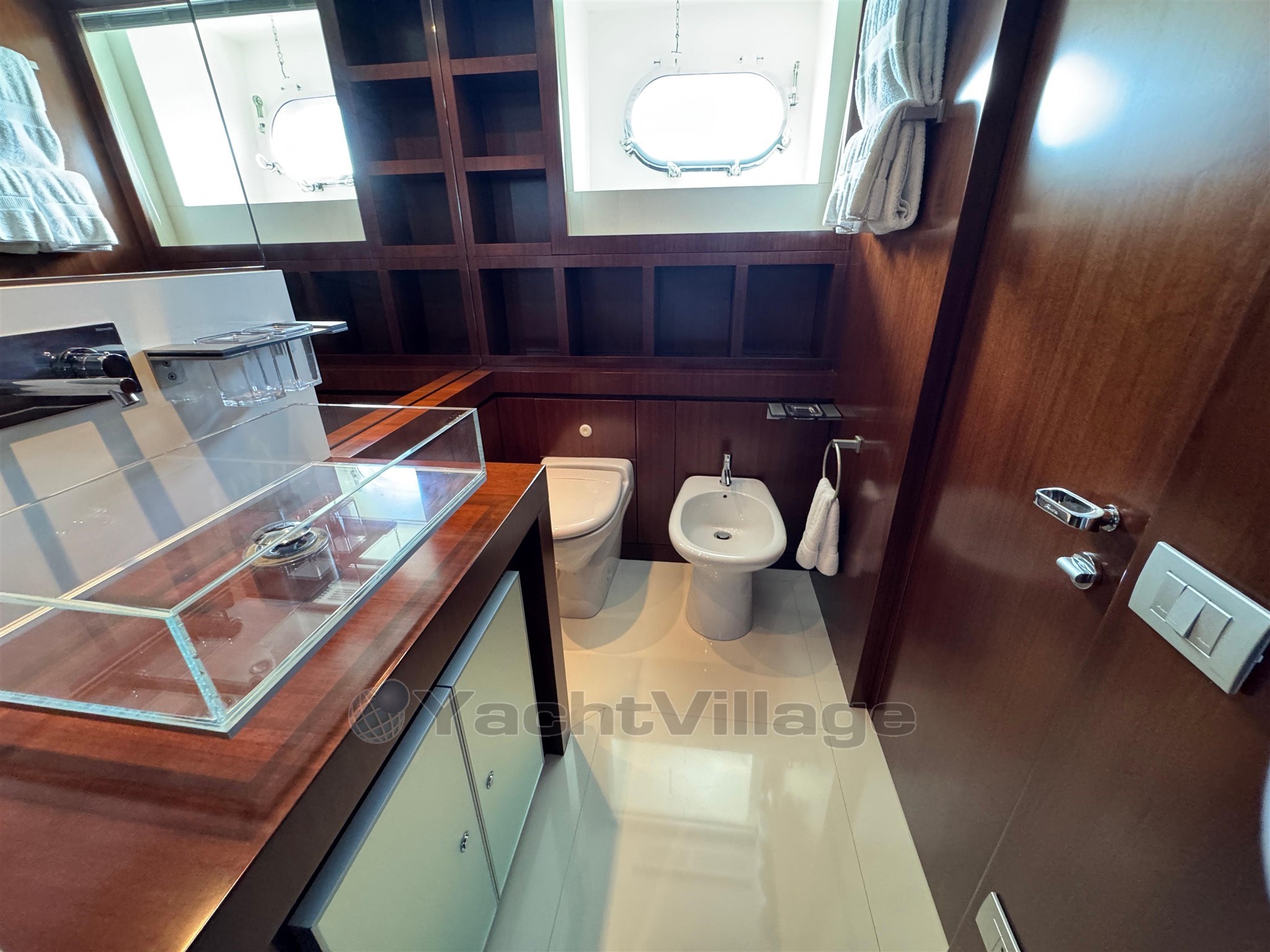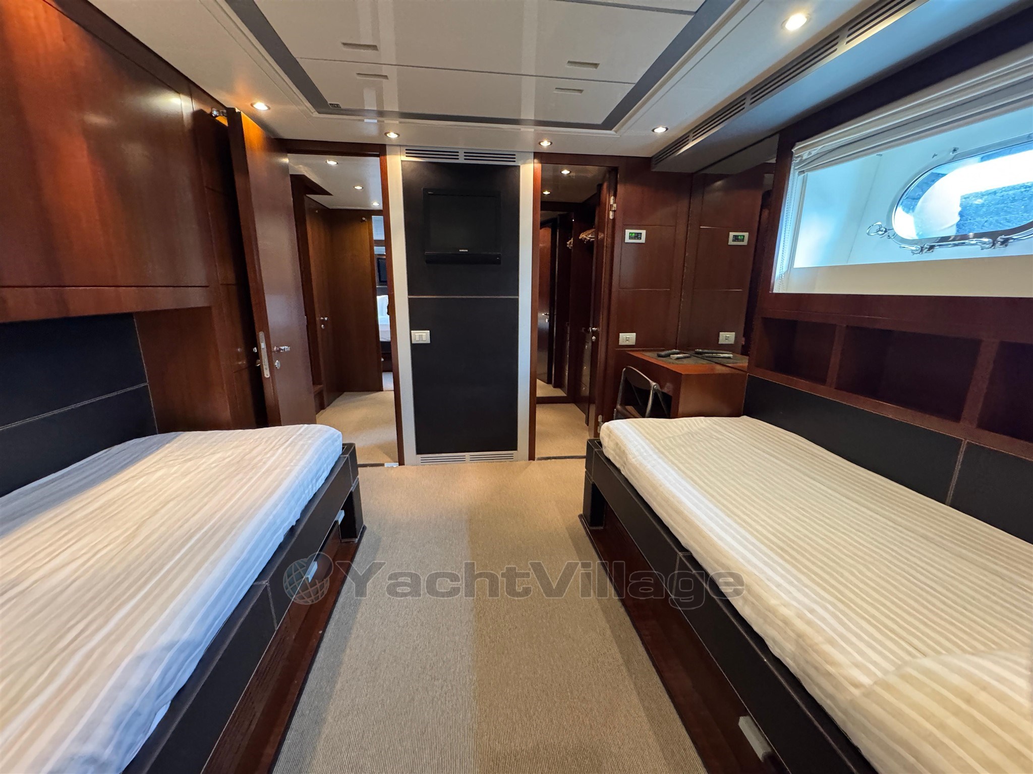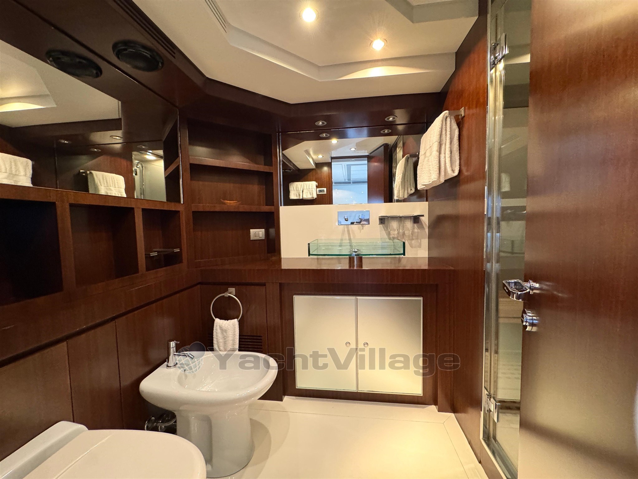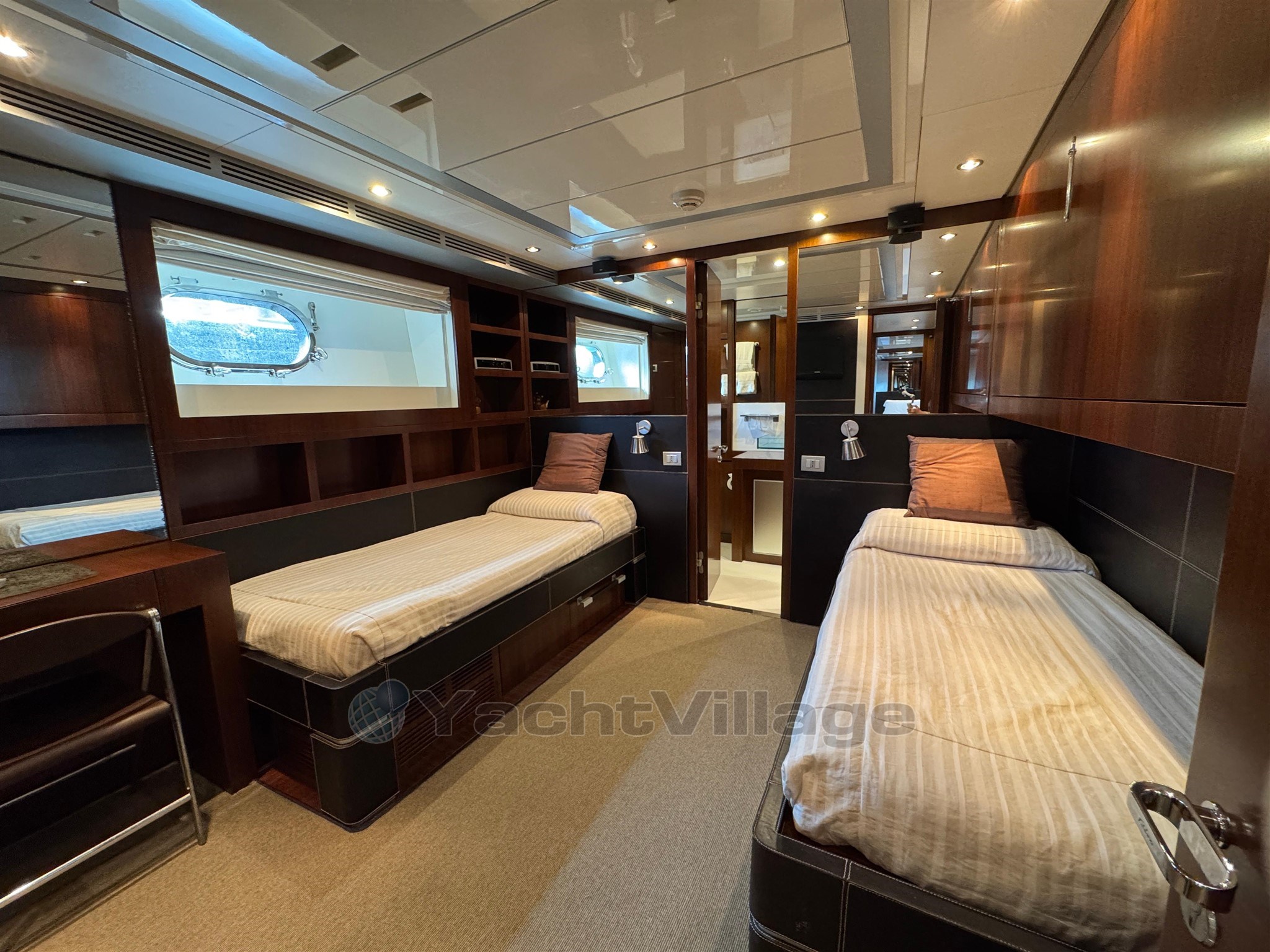 Riva Qthena 115 aloja cómodamente hasta 12 huéspedes en 4 lujosas cabinas, entre ellas: