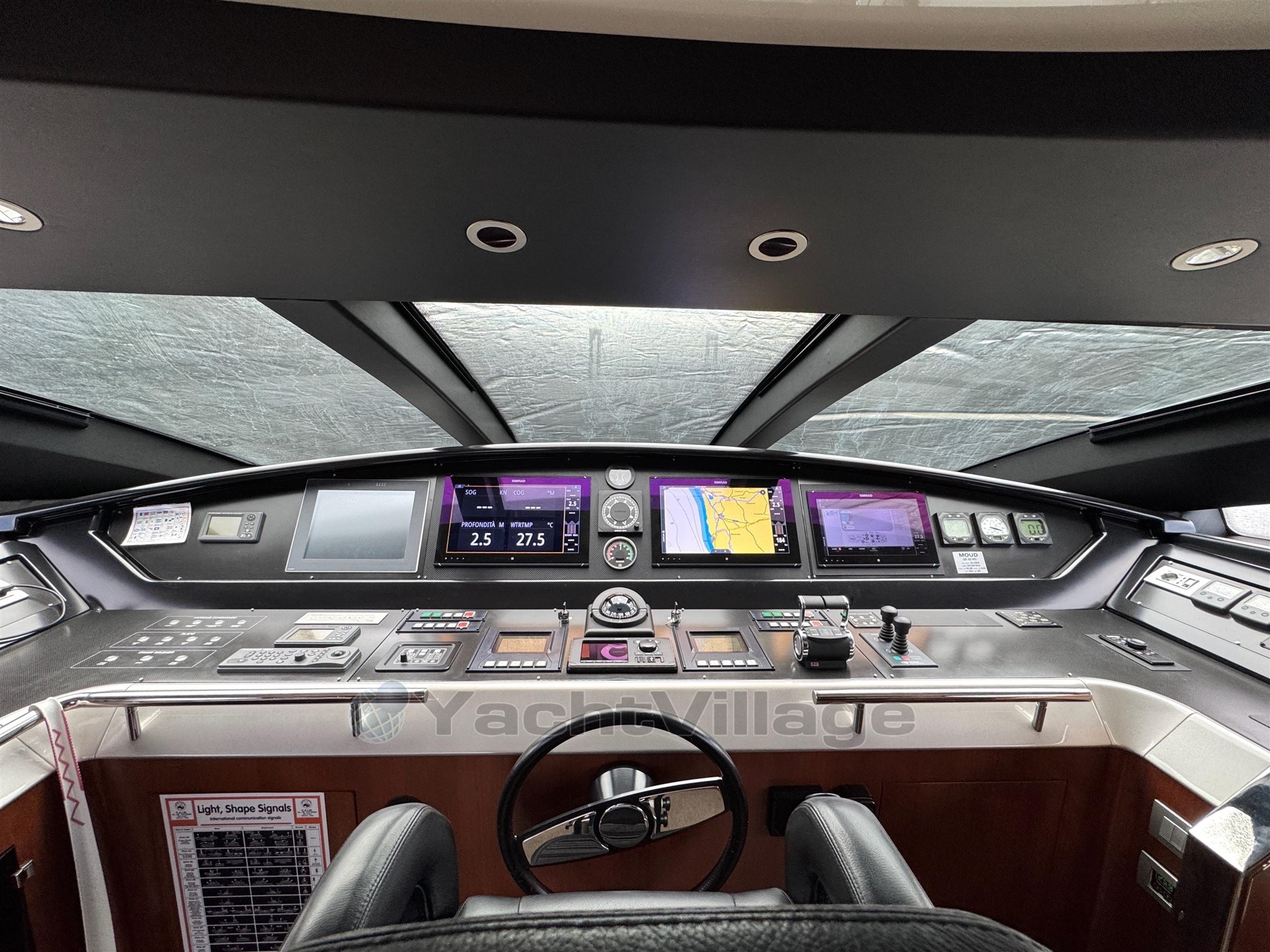 AIS, indicador de ángulo de timón, antena de radar (Simrad), brújula (giroscopio), control electrónico del motor, ordenador a bordo (Naviop), contador de cadenas, DSC VHF, sonda de profundidad (Simrad más Forwordscan), GPS (Furuno), 2 pilotos automáticos (Simrad), radar (Simrad Halo 24 pulgadas y 48 MG), radio VHF (Simrad), SSB (Furuno), estación eólica, etc.