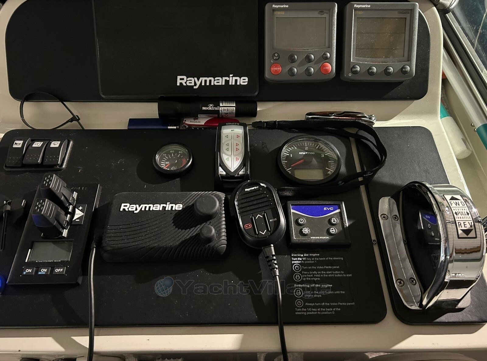Bow and stern thrusters can be switched individually and synchronously. A remote control is also included. The bow and stern thrusters also have a separate battery with charger. The radio is also from 2025.