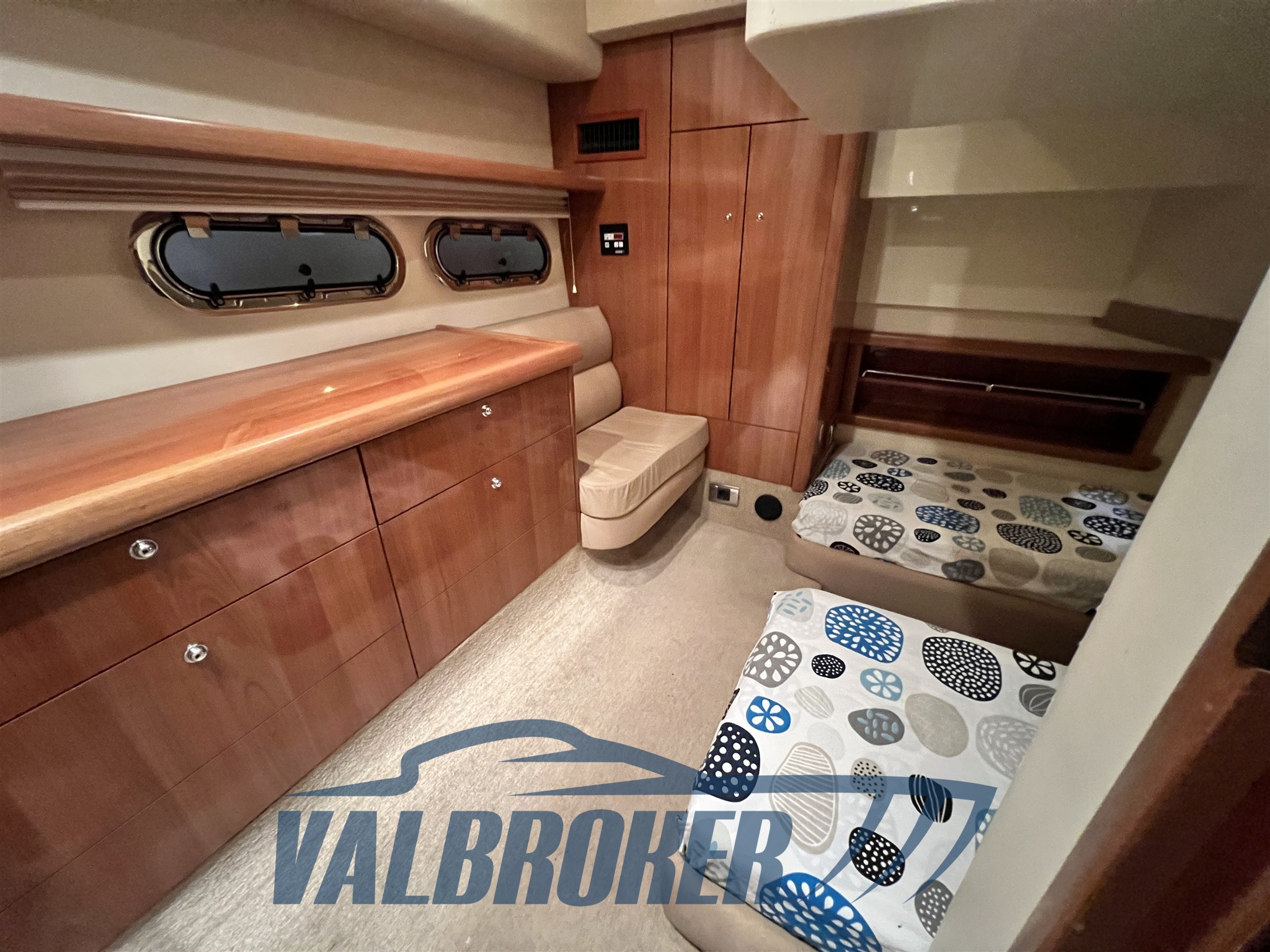 Una combinación de rendimiento, comodidad e innovación. Alta calidad y bien mantenida con techo rígido, impulsado por 2 Volvo Penta D6 310. El salón puede cerrarse con puertas correderas y, al mismo tiempo, el techo solar y las puertas correderas permiten abrir el interior y entrar la luz solar cuando el tiempo lo permite. Los espacios interior y exterior están bien equilibrados y funcionales, con dos camarotes dobles y dos baños. El sofá trasero es eléctricamente ajustable y ofrece espacio de almacenamiento adicional.