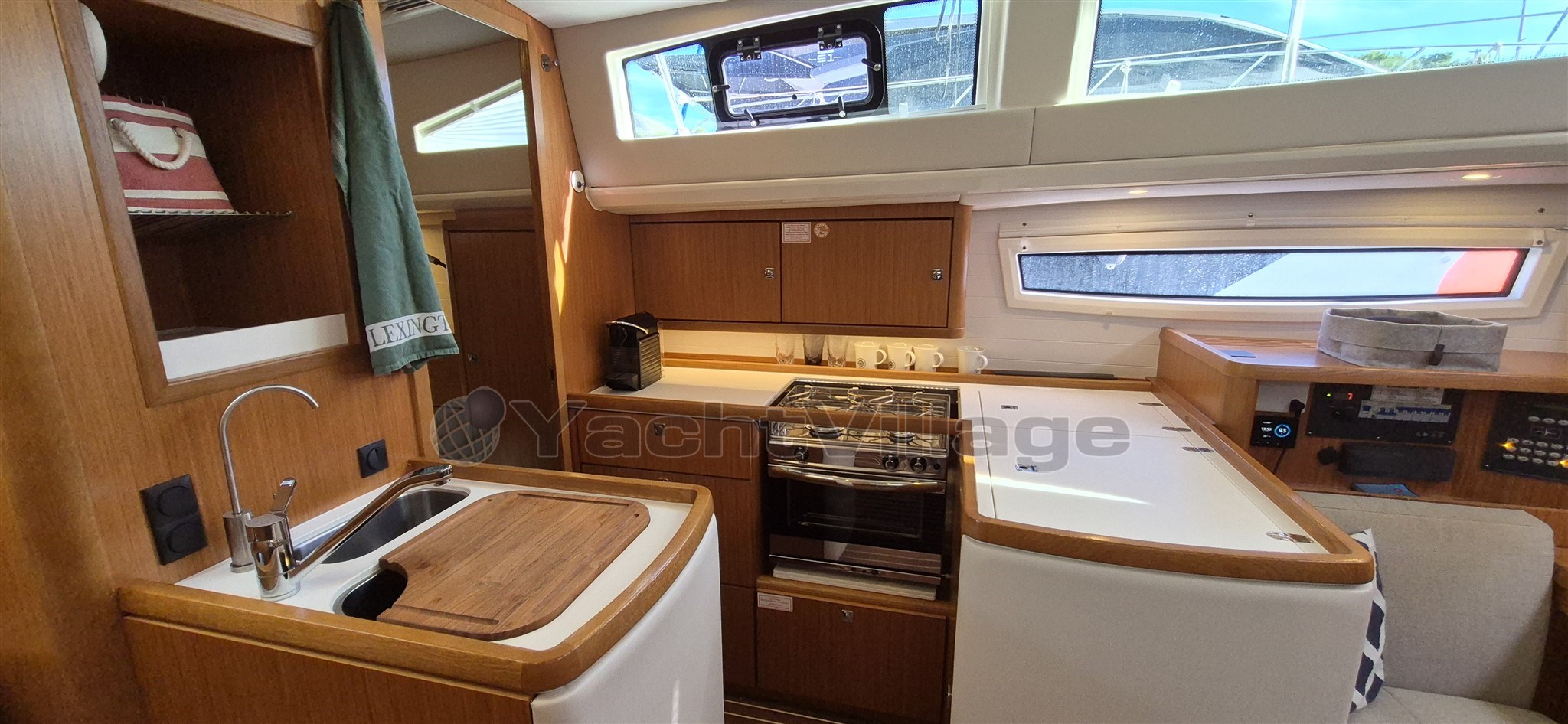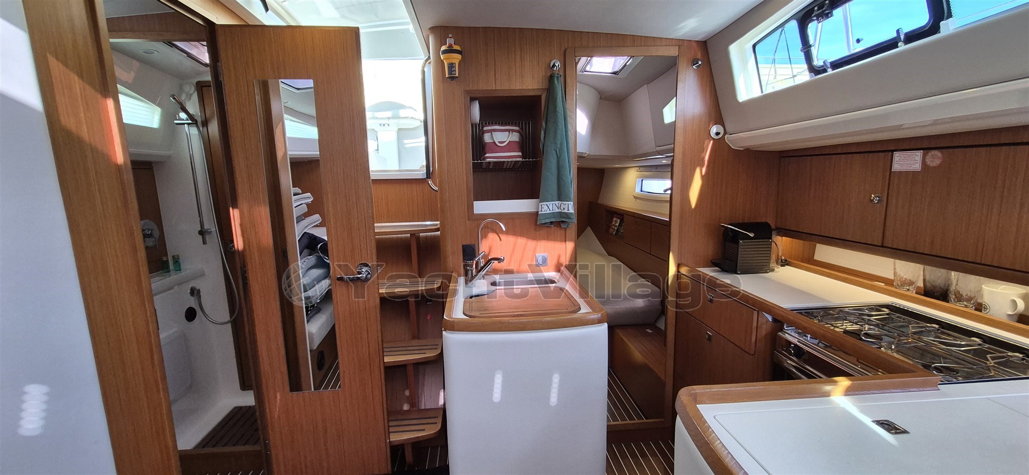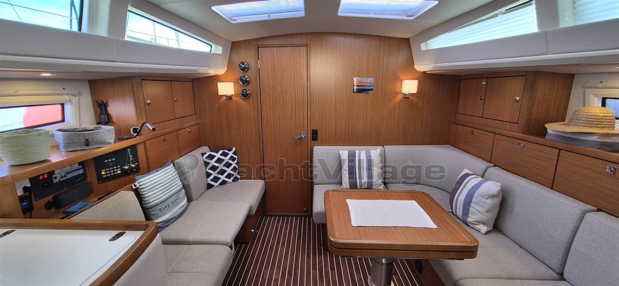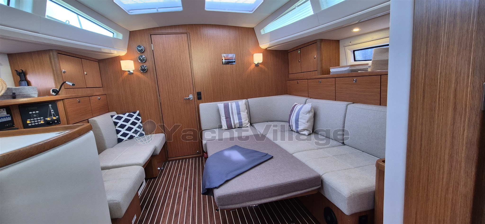 Reading lights with USB socket Stainless steel look with leather upholstery in all cabins and at the navigation station