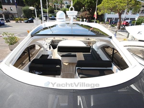 Le cockpit extérieur offre des espaces généreux. Il propose un bain de soleil fixe, un coin repas et une cuisine d’été. Le poste de pilotage, tout aussi sophistiqué, permet au pilote et au passager d'admirer pleinement l'horizon. Une plateforme de bain hydraulique facilite l’accès au bain et au garage à annexe.