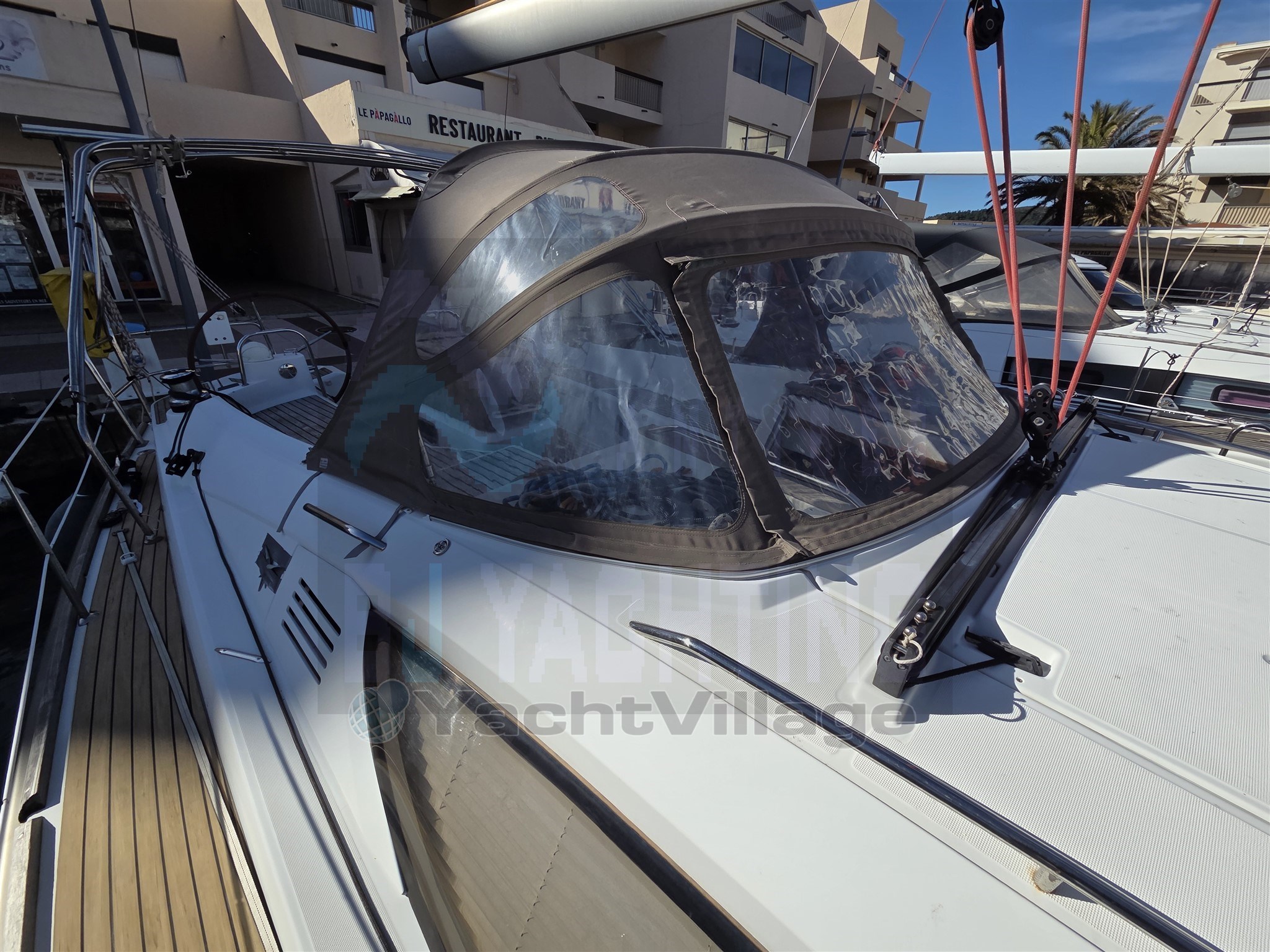 - Nombreuses options : Électronique Raymarine complète (GPS/traceurs intérieur + extérieur, pilote automatique, radar, AIS), Winchs électriques Harken (manœuvres facilitées), Annexe + moteur électrique Torqeedo