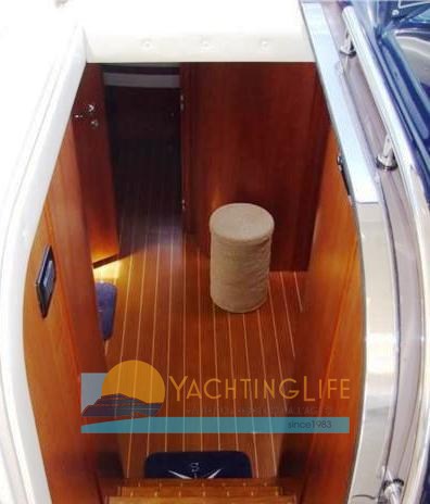 Versión de 3 camarotes sin comedor interno - los dos baños tienen duchas con puertas correderas - Casco repintado de azul - Depósito de agua negro - Toldo trasero adicional - Pasarelas laterales de teca - Nueva electrónica Raymarine - Generador reemplazado -