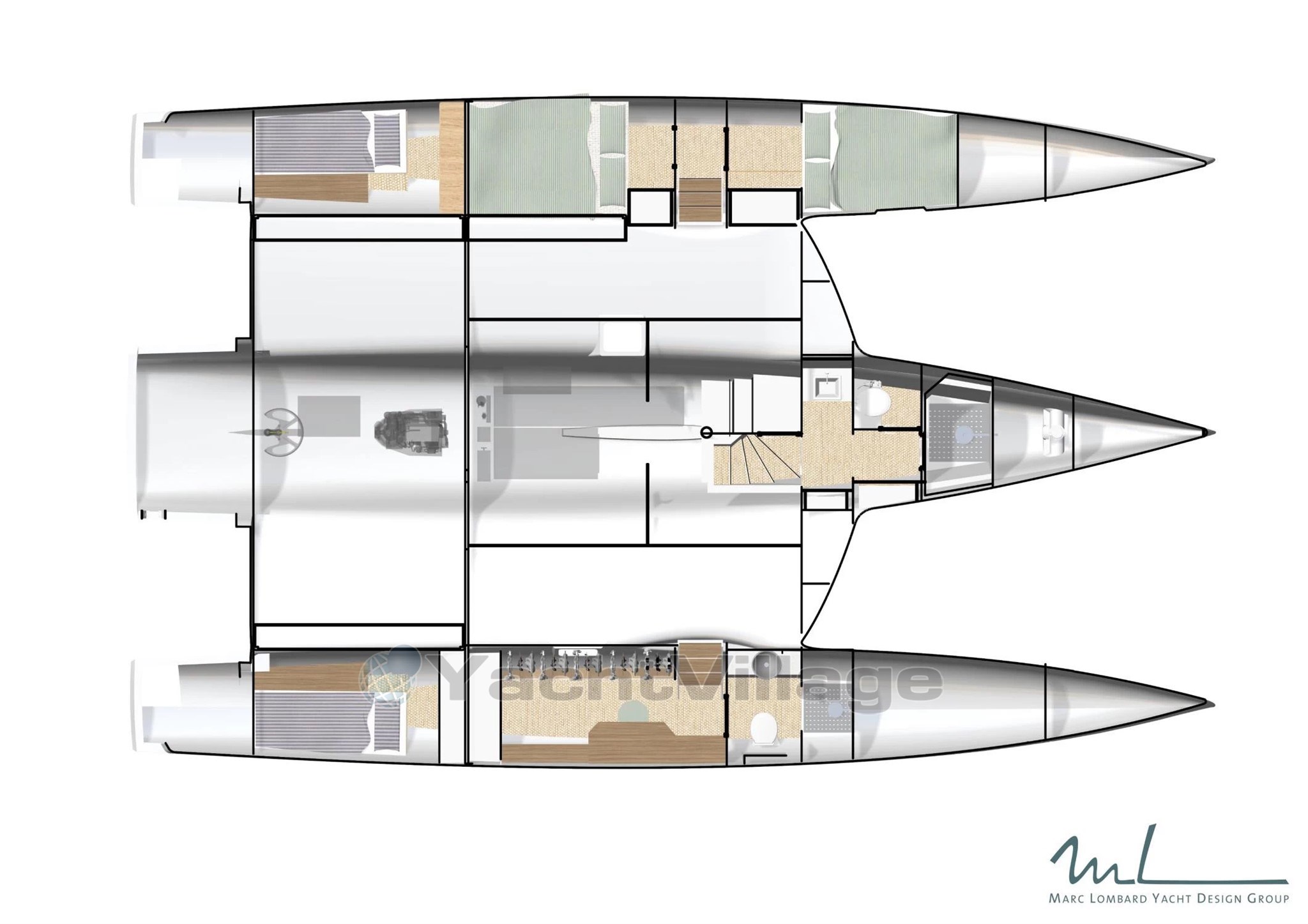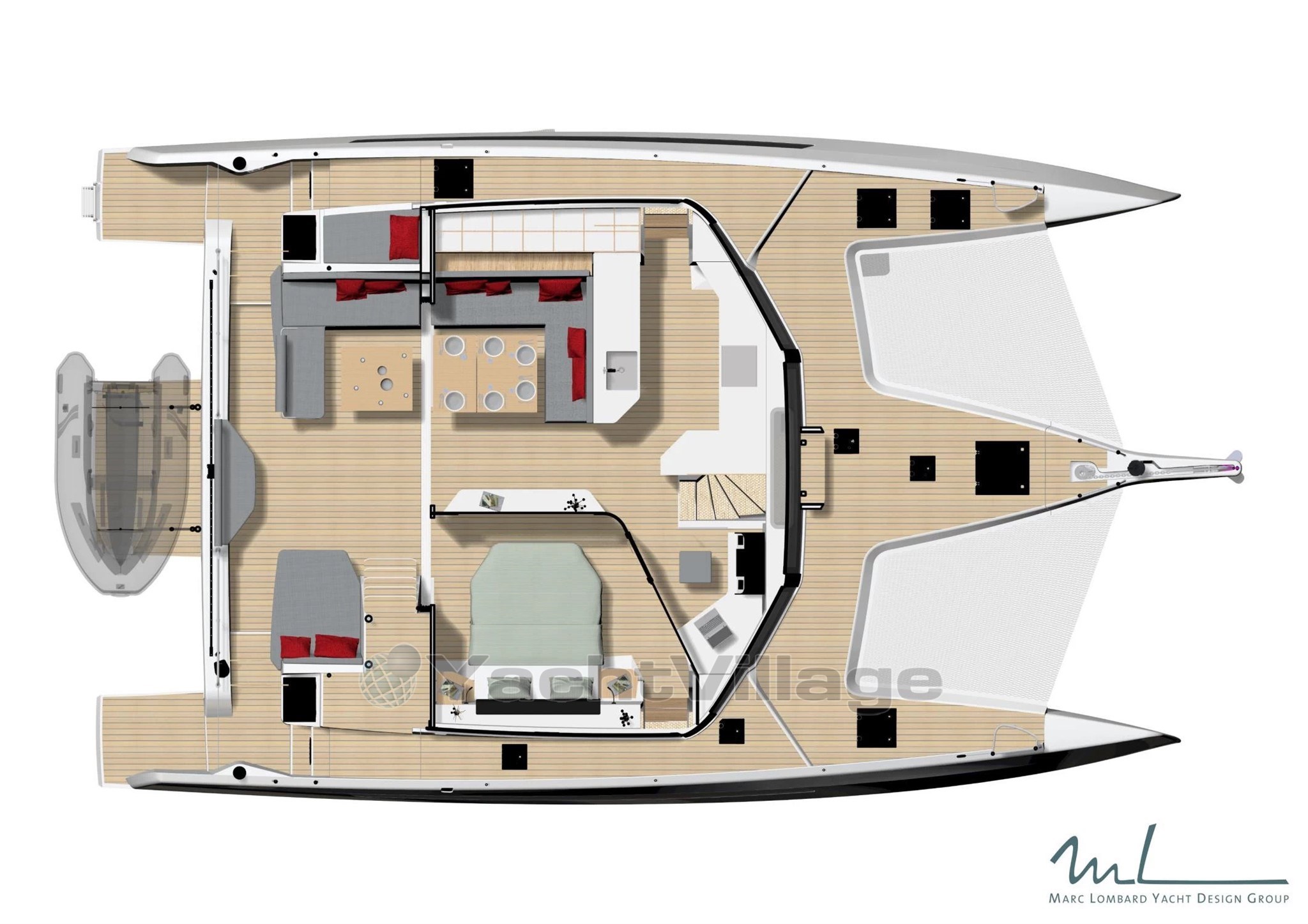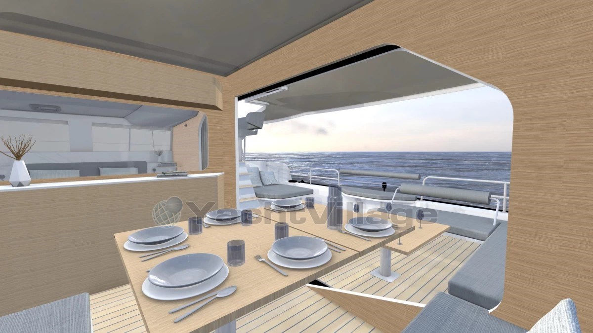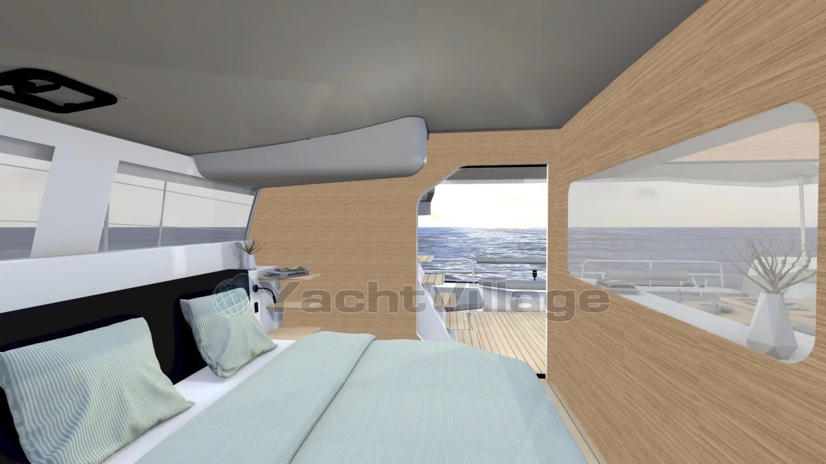 A bord, le NEEL 48 impressionne par son cockloon, espace unique combinant cockpit et carré intérieur, entièrement décloisonné pour une vie à bord fluide et lumineuse. Le niveau de confort rivalise avec des unités bien plus grandes: grande suite propriétaire sur le pont principal, cabines invités dans les flotteurs, cuisine panoramique, volumes de rangements intelligents - tout est pensé pour vivre en mer sans renoncer à rien.