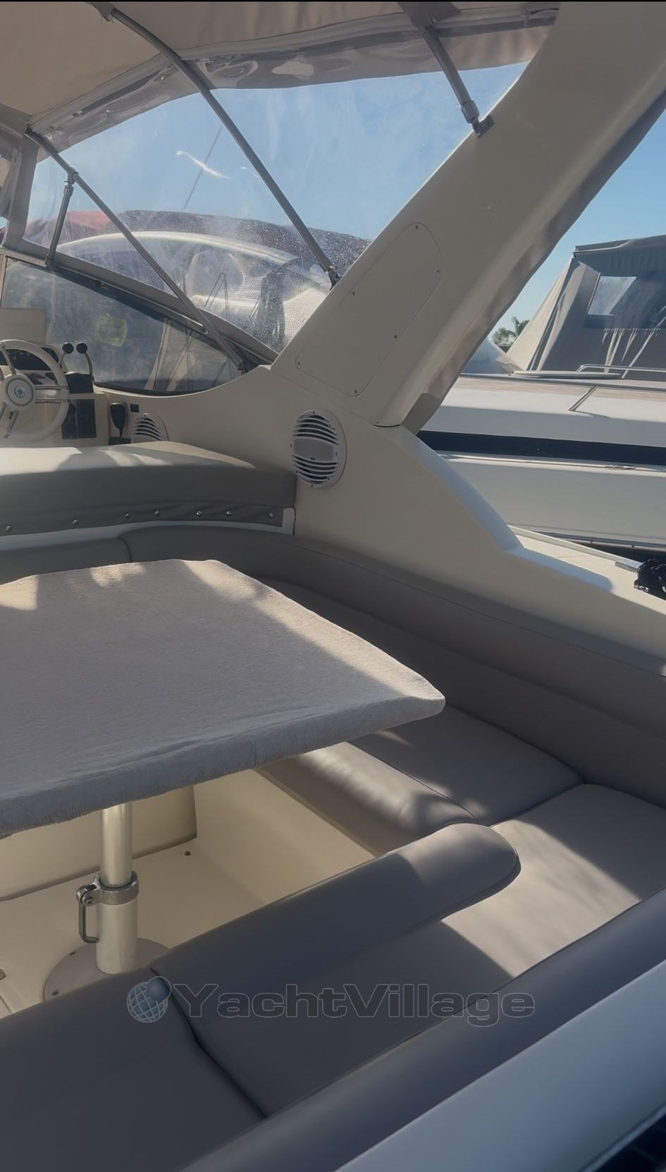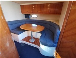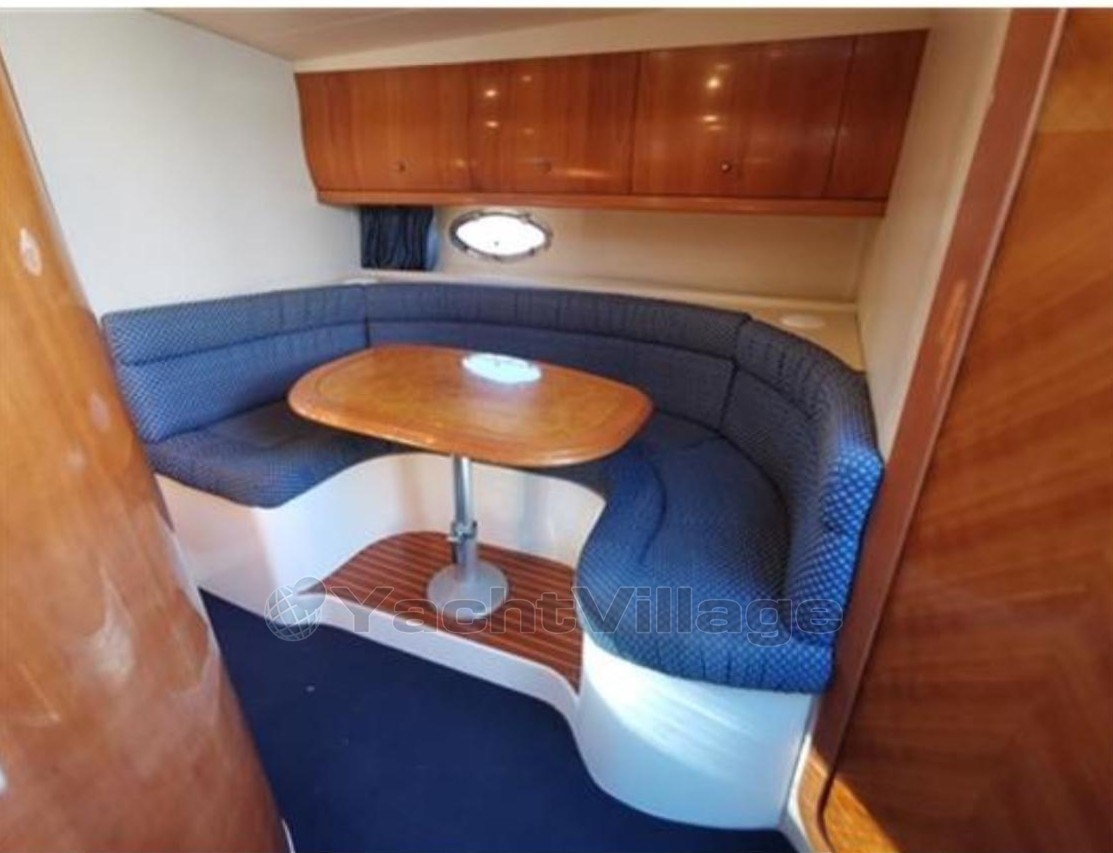 Gran cabina con teca sintética reemplazada en octubre de 2023, sofá semicircular con mesa plegable y convertible, cocina exterior, pasaje hacia adelante desde la cabina y gran compartimento de almacenamiento. Interior en buen estado, comedor con sofá semicircular y mesa plegable y