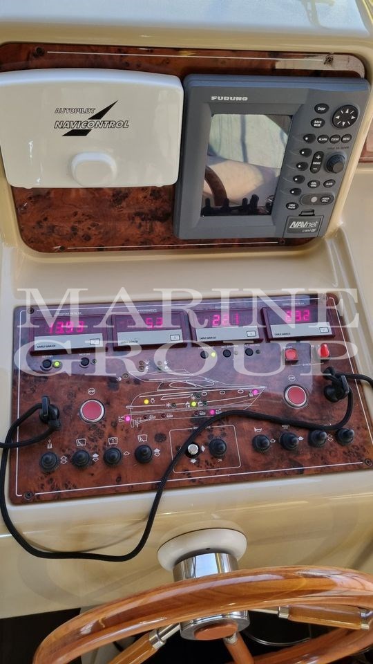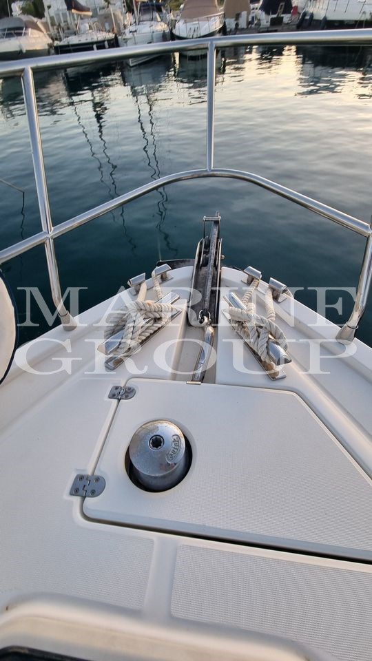 Haut-parleurs, antenne de télévision par satellite, climatisation, bimini, système d’eau chaude, climatisation réversible, coussins complets, coussins arrière, coussins à l’avant, coussins de passerelle d’équipage, coussins de cockpit, réfrigérateur intérieur, système TV, plancher intérieur en bois, plaque électrique, prises internes 12V, prises internes 220V, radio AM/FM, réservoir d’eaux usées, stéréo, auvent, TV, angle de gouvernail, chargeur de batterie, contrôle électronique du moteur, douche sur le pont, double roue, Tronc, passerelle, quai, porte d’entrée, cockpit en teck, prise d’amarrage 220V, guindeau électrique, échelle de bain