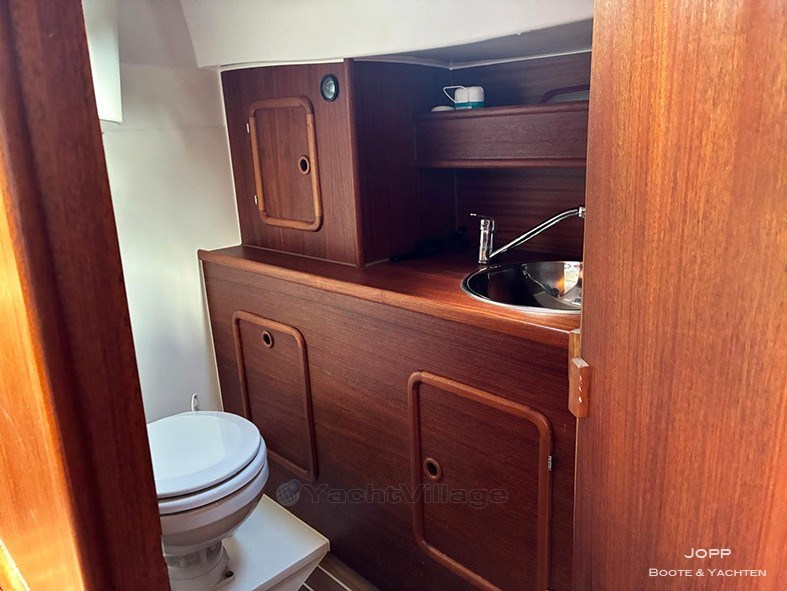 Diesel heater Webasto Air Top 2000ST/4 bow thruster from Lewmar 1.5 KW Drinking water installation with 50L tank and display Hot water system with 20L boiler Lake toilet with hand pump, 50L holding tank with level indicator and a lake outlet as well as an outlet for pumping out Radio FM/CD including 4 speakers/ including 2 waterproof speakers in the cockpit Stern ladder with flat steps