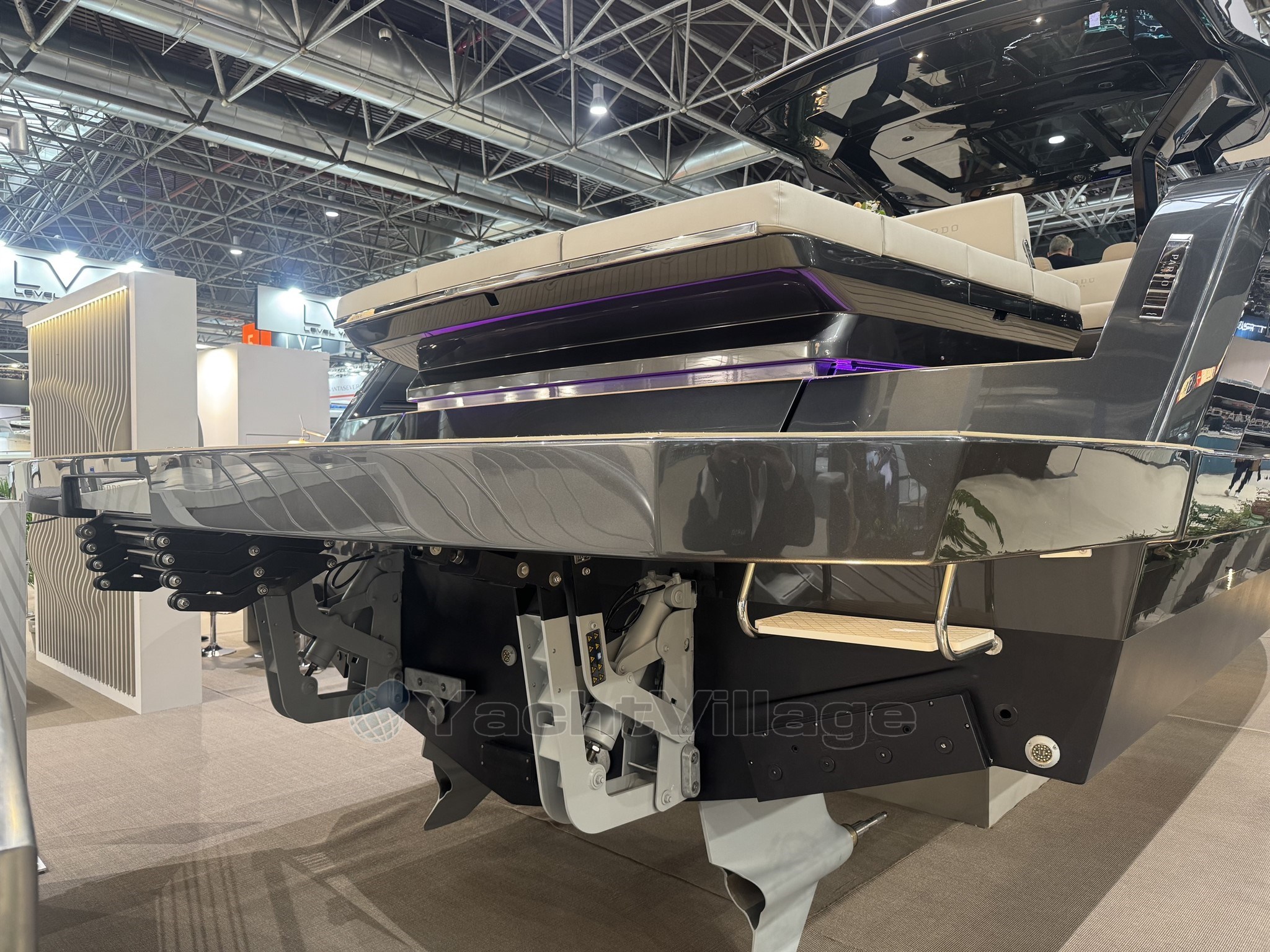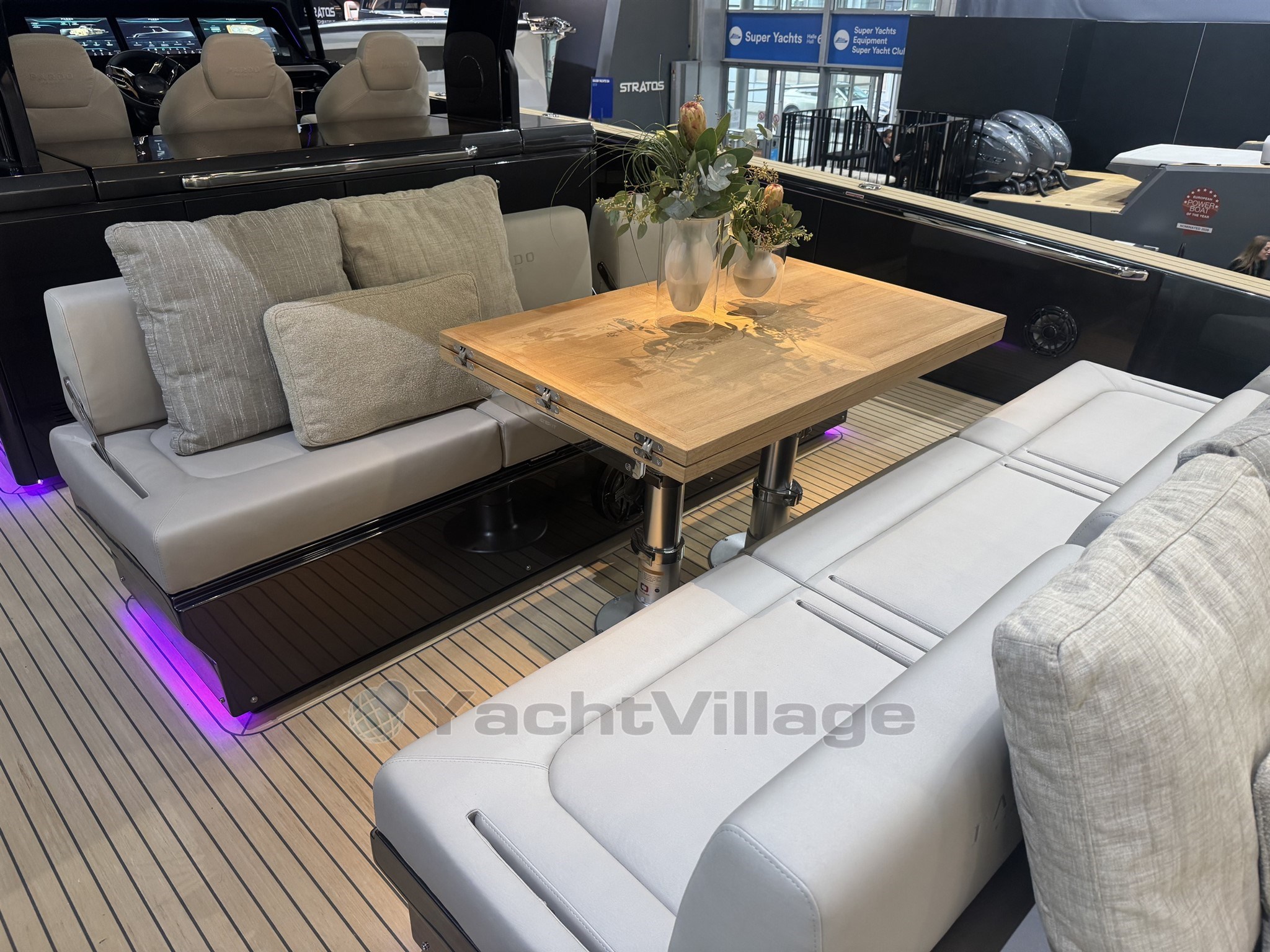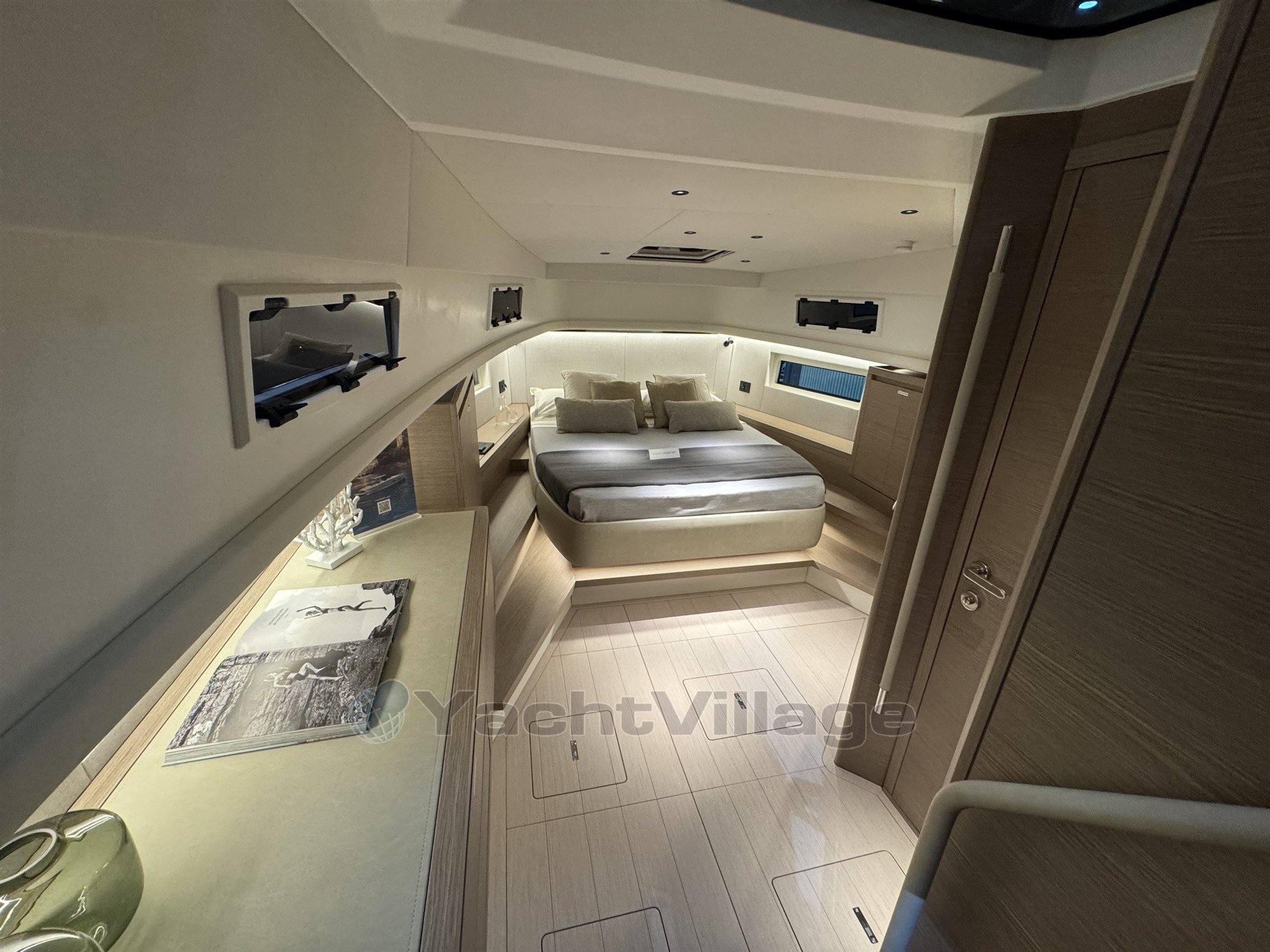 Le système d'éclairage entièrement personnalisable transforme chaque instant, de jour comme de nuit, en une expérience enchanteresse. Le poste de pilotage, équipé de trois écrans tactiles, offre un contrôle total sur la navigation, les cartes et les systèmes de bord, permettant de régler la climatisation, l'éclairage et l'audio d'une simple pression. La salle des machines intelligemment organisée abrite deux puissants moteurs IPS atteignant des vitesses de 37 nœuds, tandis que l'optimisation du rendement énergétique et les réservoirs agrandis (1 300 L de carburant, 400 L d'eau) permettent de naviguer sur de longues distances. Chaque élément, des prises d'air intégrées au joystick de manœuvre, a été conçu pour être fiable et intuitif.