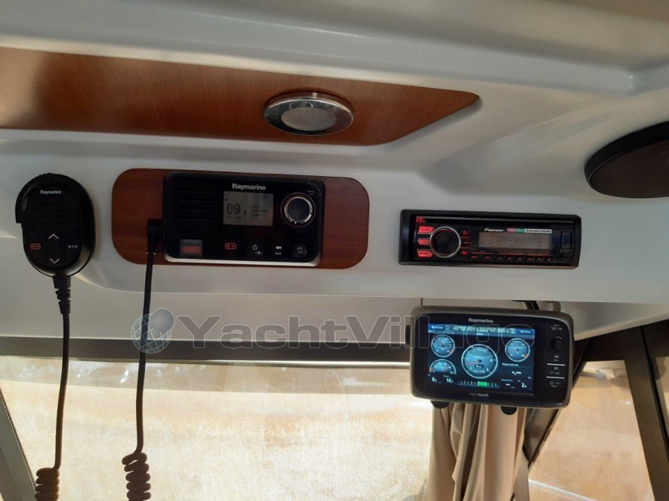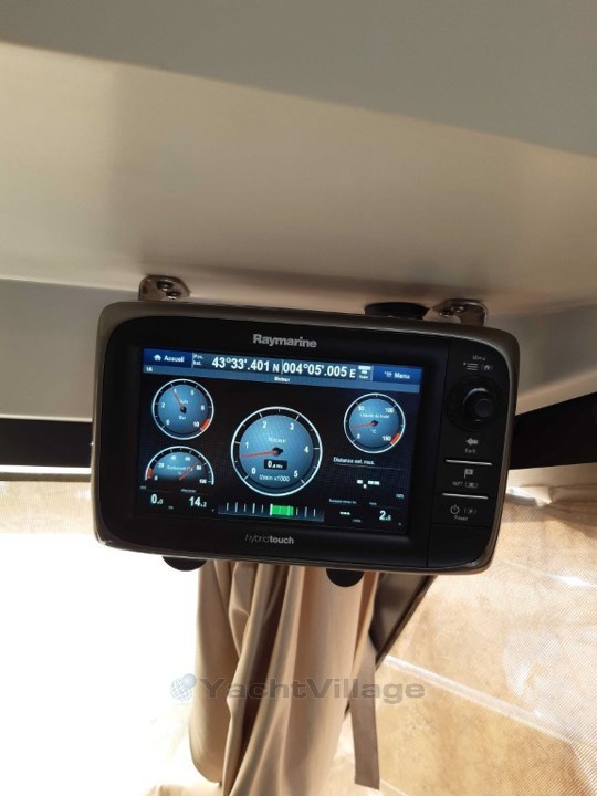 Il est quasi full options, il y a même un propulseur arrière , rare sur le marché, écran GPS 12 pouces,radar,ultra son antifouling, survie, etc...