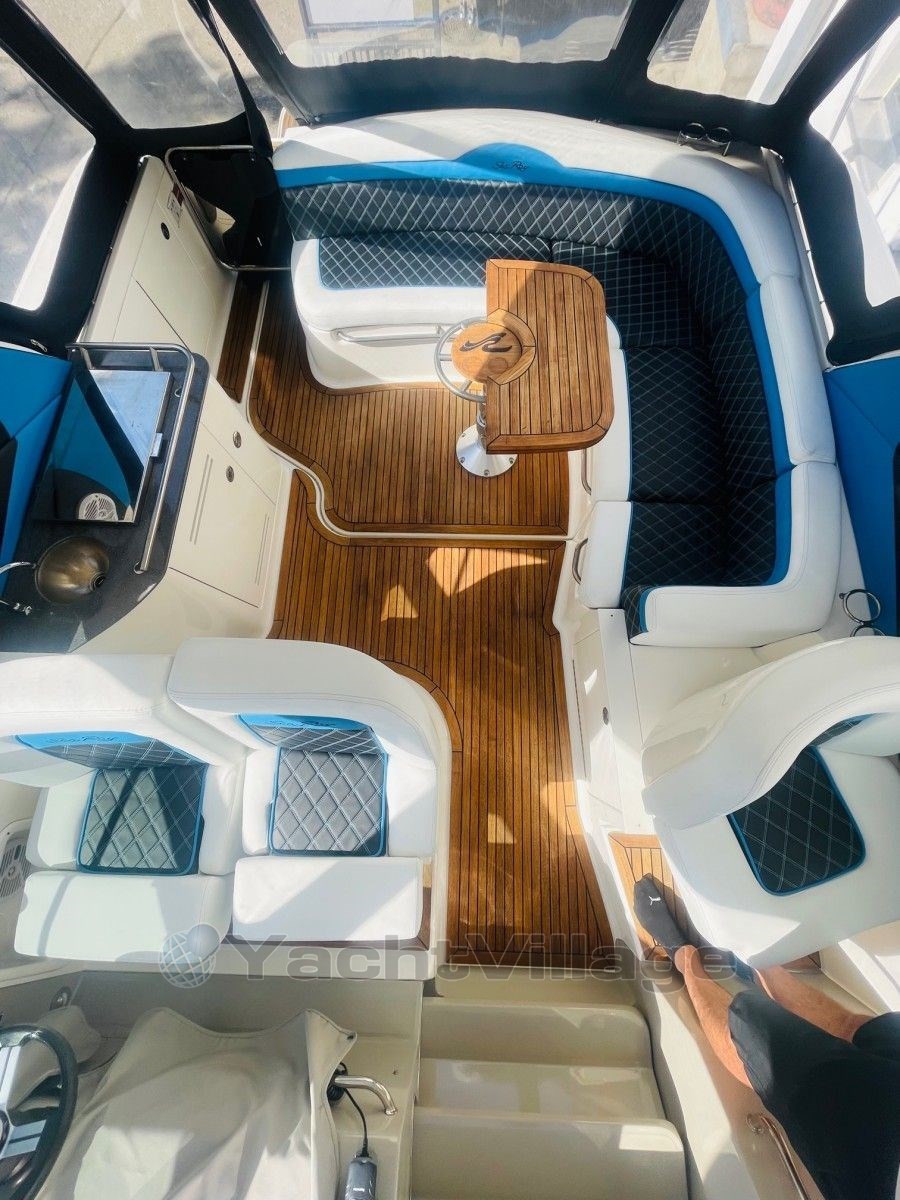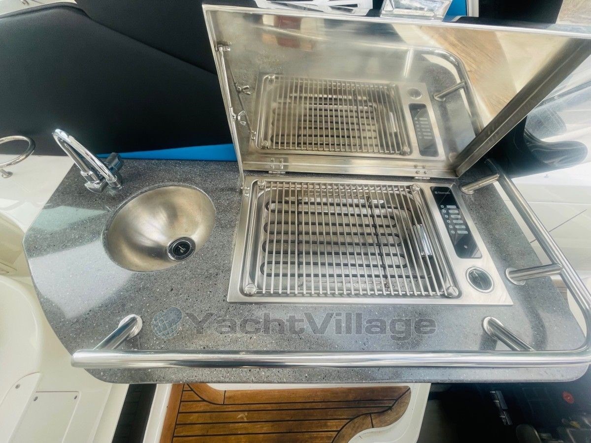 Large cockpit with L seating area leather completely new, real teak folding table adjustable, galley with electric grill, stainless steel sink and double driver's seat swivel to the seating area, passenger single seat also swivel,