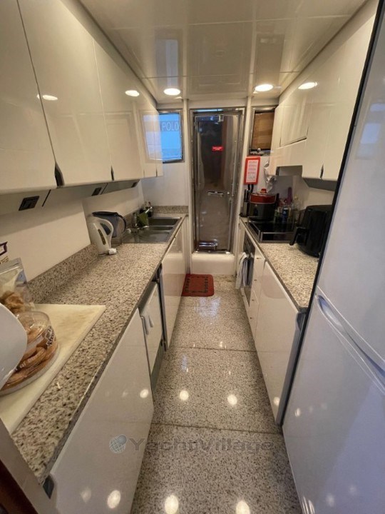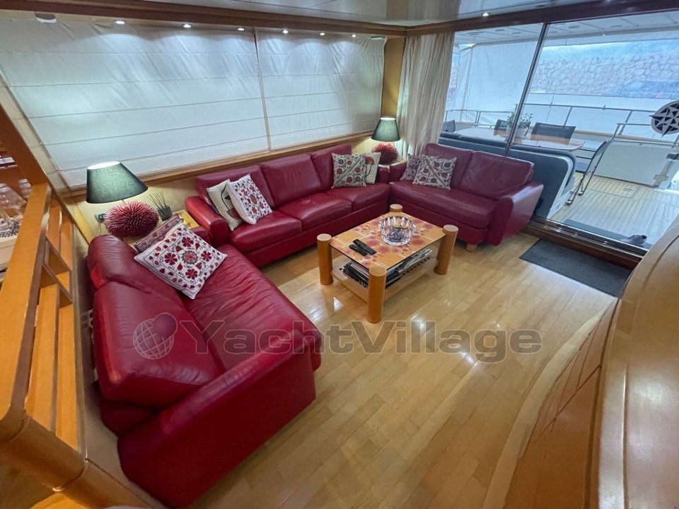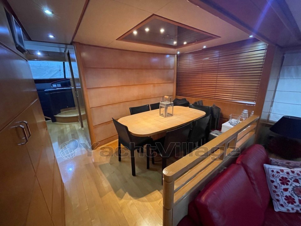Intérieur raffiné : L'intérieur est conçu avec des matériaux de haute qualité, mêlant bois précieux, cuir et tissus luxueux. Le bateau dispose d’un salon spacieux et confortable ainsi qu’une salle à manger, idéale pour recevoir des invités.