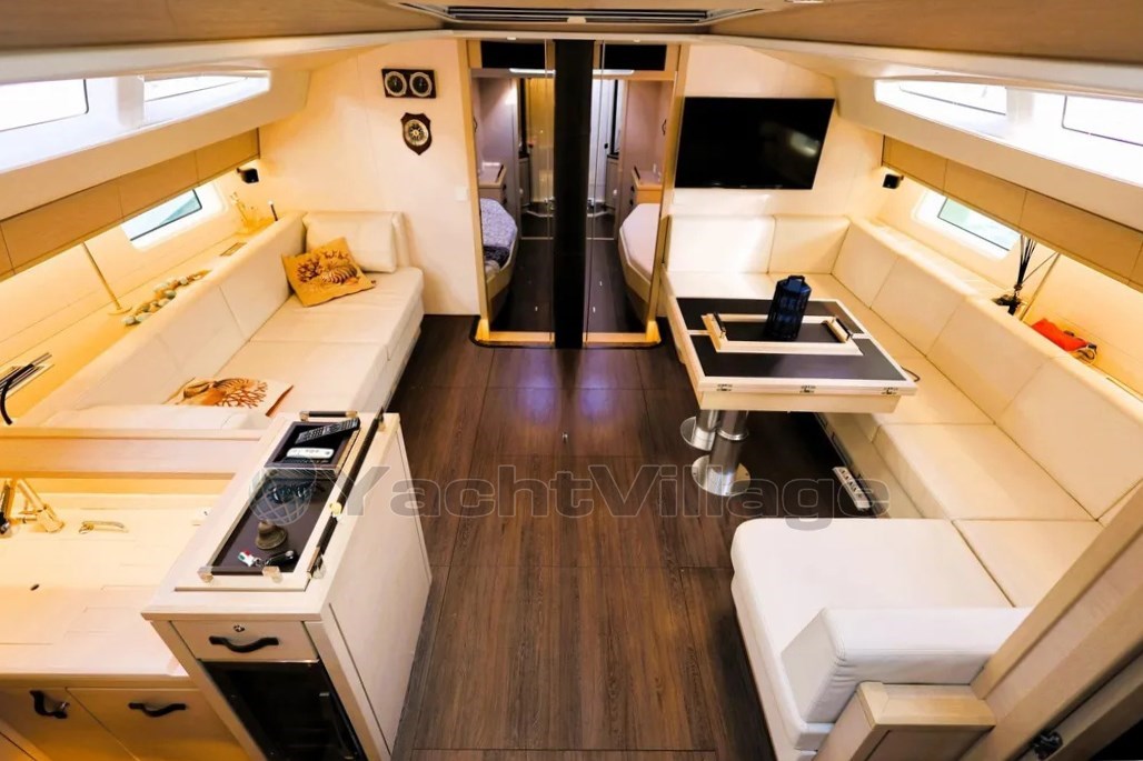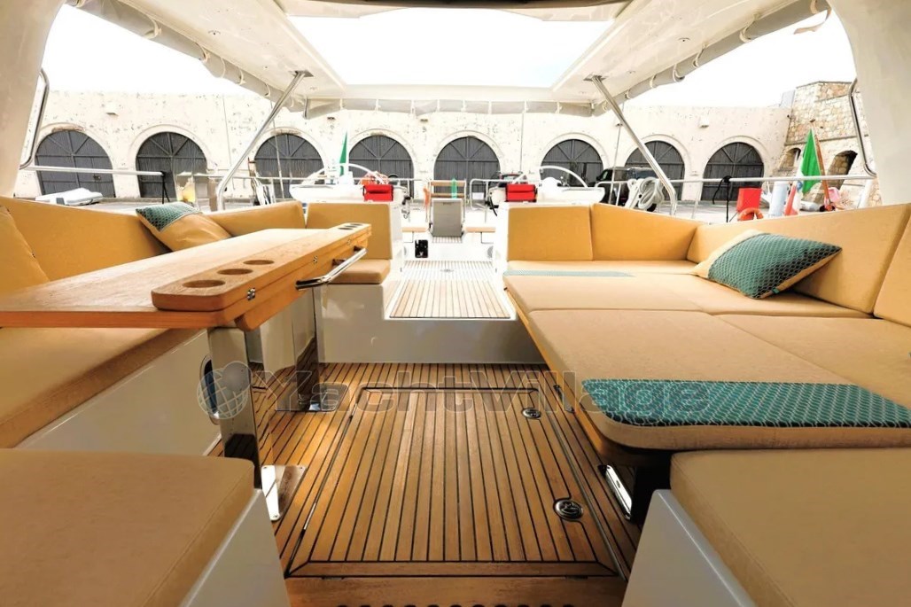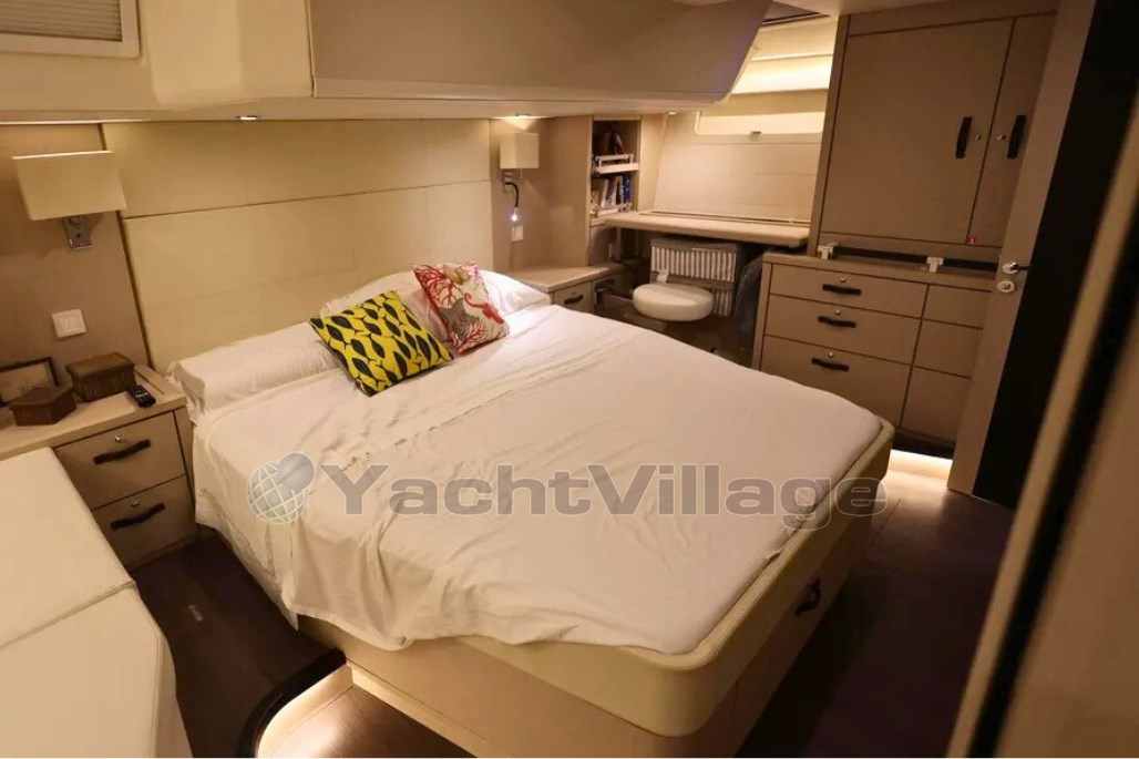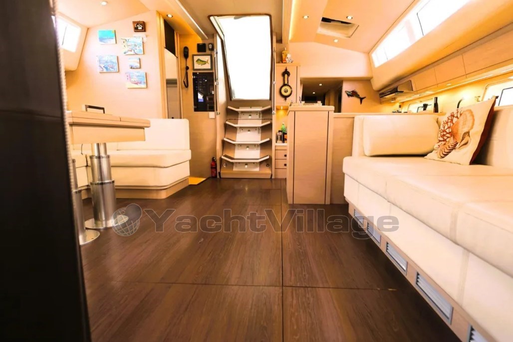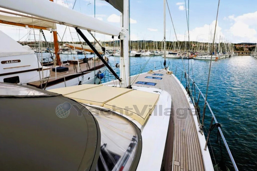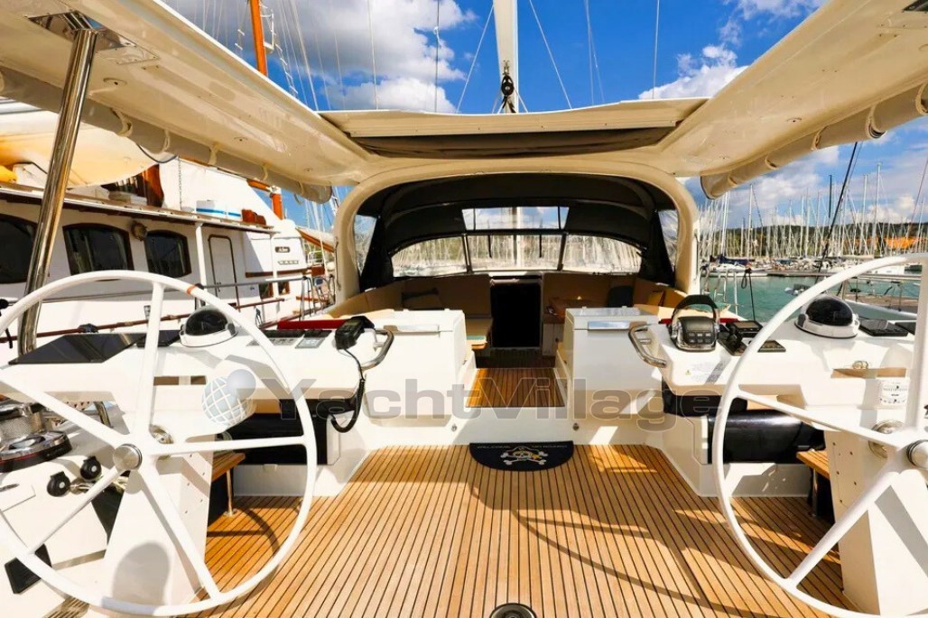 Le grand cockpit, le généreux bimini, la plateforme de bain et le garage du tender rendent la vie à bord particulièrement agréable, tandis que le plan centralisé du pont et les treuils électriques permettent une manipulation facile avec un petit équipage. Connaissant personnellement le propriétaire, je peux garantir un soin ordinaire et extraordinaire avec une précision irréprochable dans l’entretien.