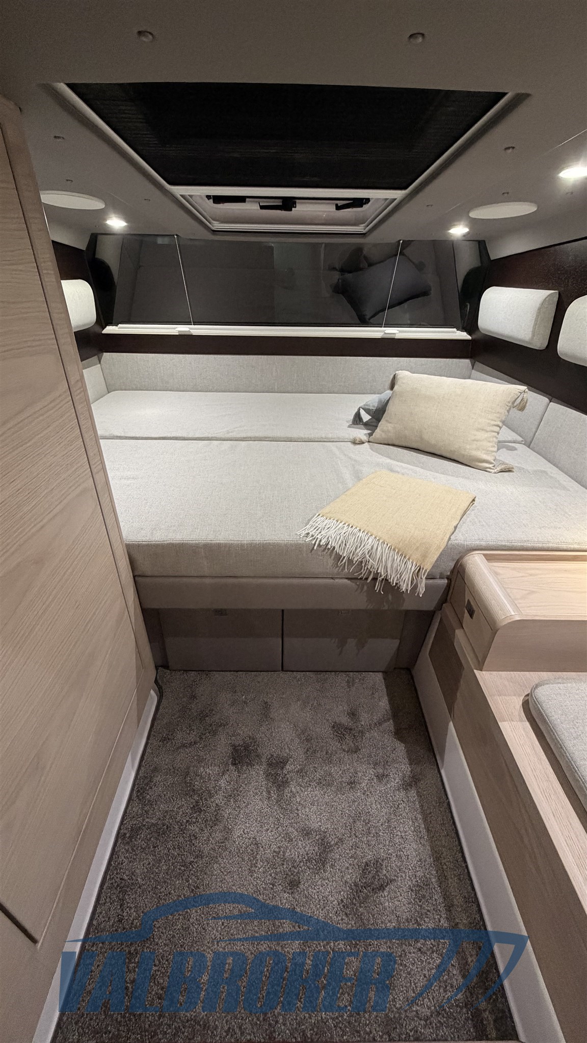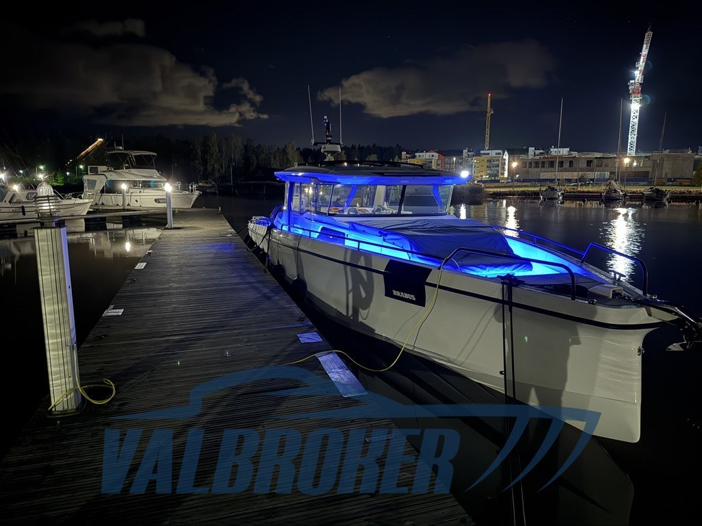 Édition méditerranéenne avec les lignes Brabus. Deux cabanes et une salle de bain. Radar Simrad, panneau solaire, générateur, chauffage Webasto.