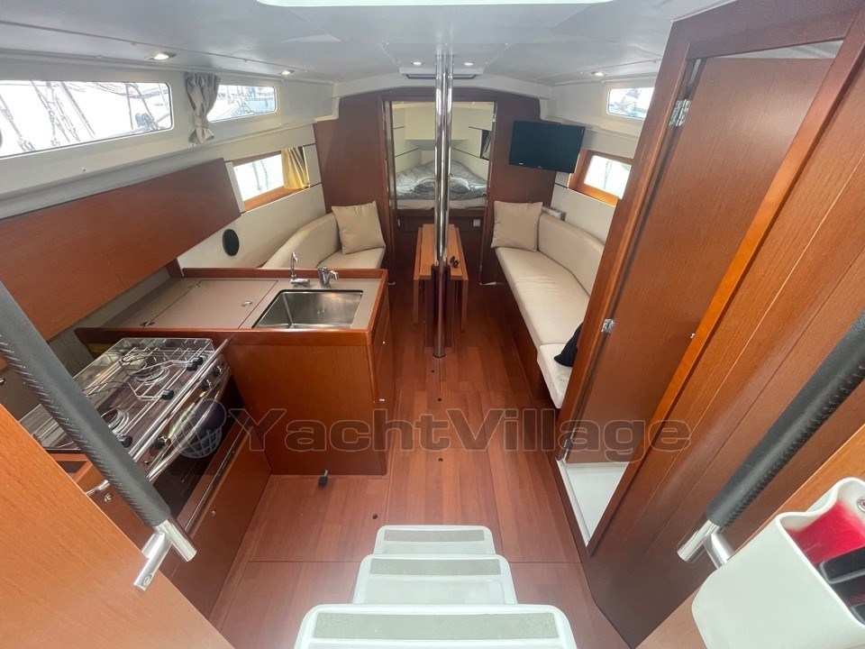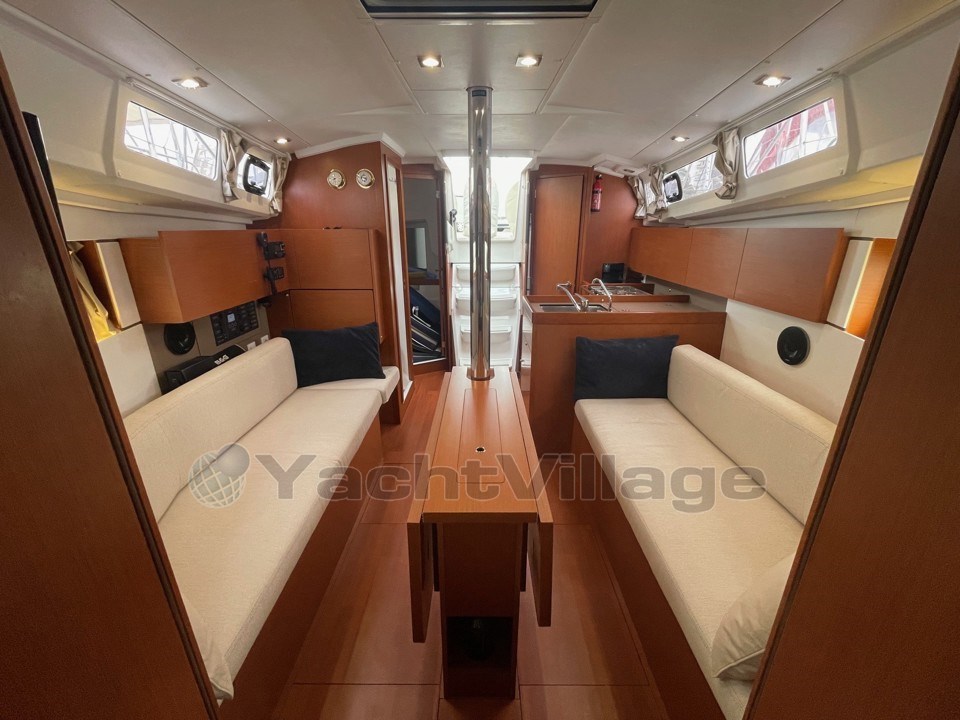 L’agencement est optimisé pour offrir un maximum d’espace et de rangements, avec des finitions modernes typiques de la gamme Oceanis.