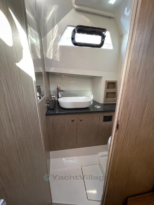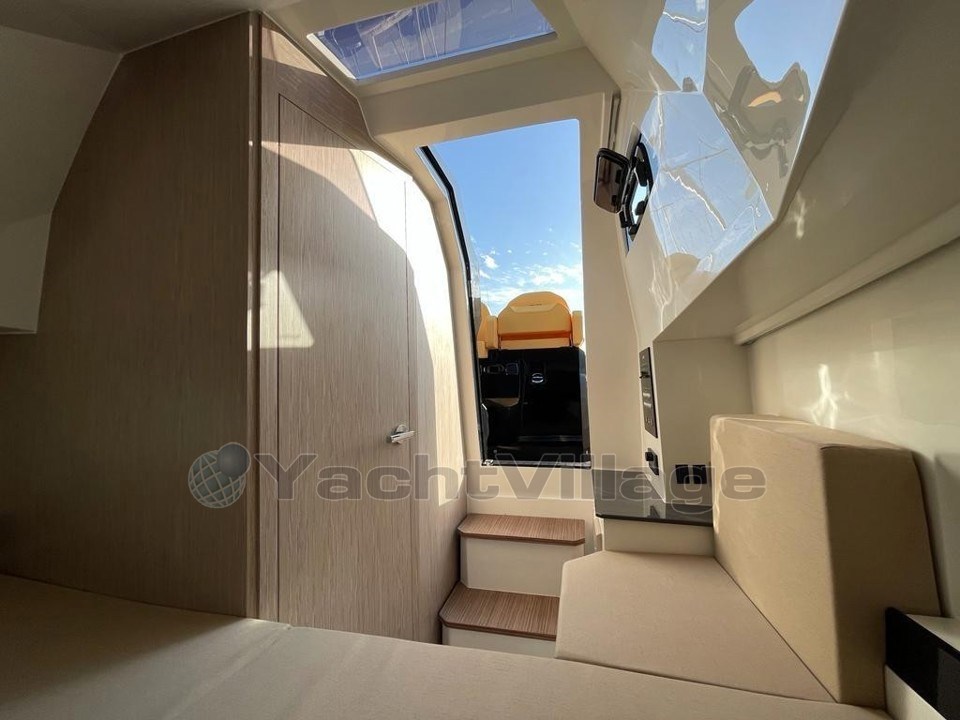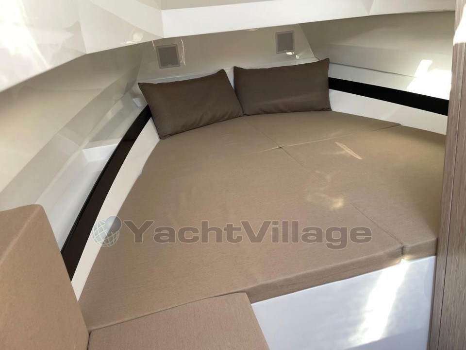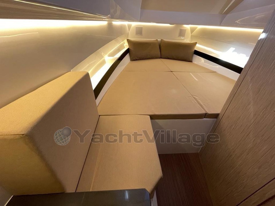 Dès le premier regard, son cabine parfaitement aménagée invite au bien-être, tandis que ses deux bains de soleil, à l’avant et à l’arrière, prolongent l’espace de détente. À l’arrière, le bain de soleil se transforme aisément en coin repas grâce à une table télescopique intégrée.
