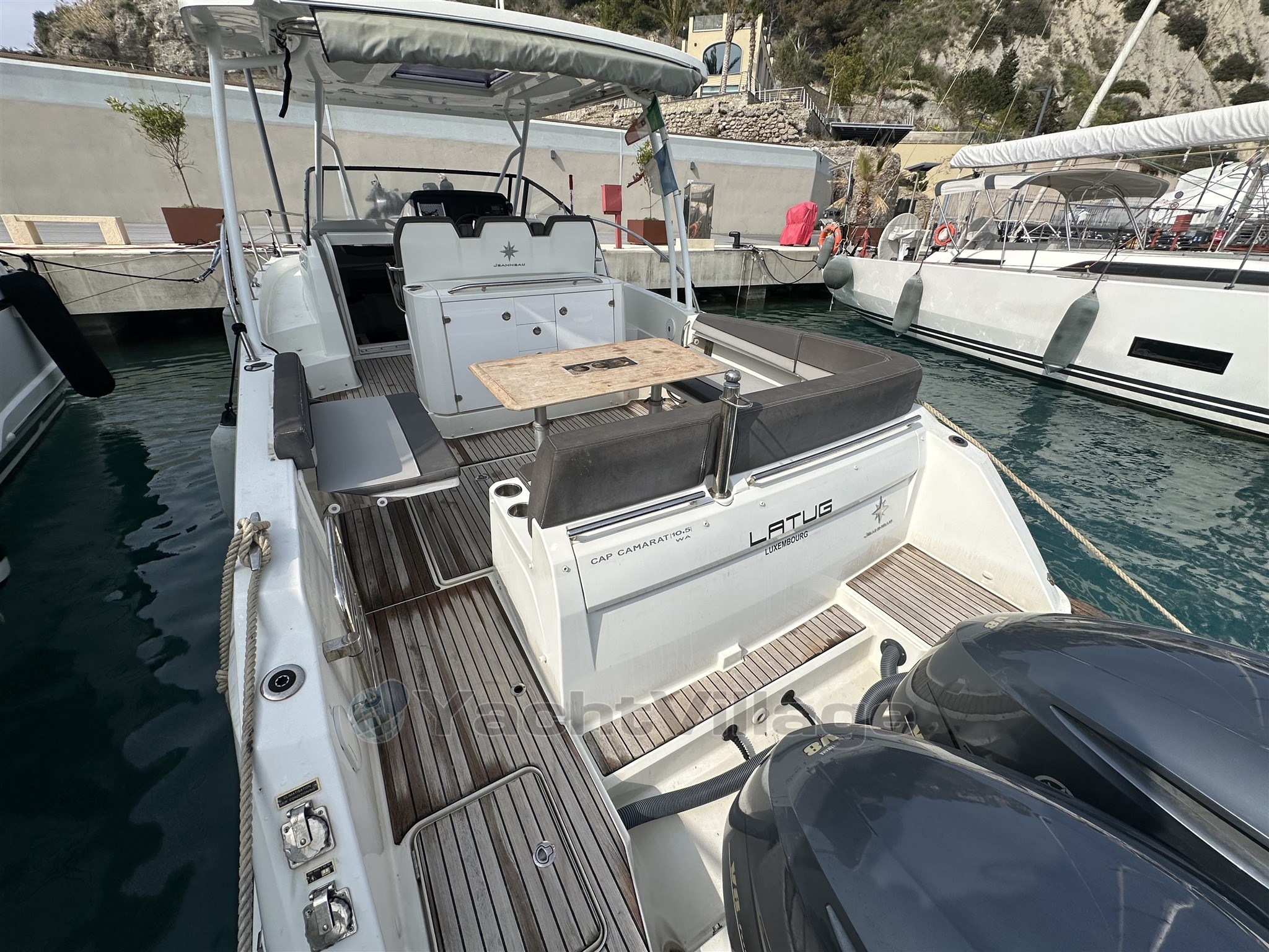 Grâce à sa carène performante et à sa double motorisation Yamaha V8, ce Jeanneau Cap Camarat 10.5 offre des sensations de navigation exceptionnelles tout en conservant un excellent niveau de confort pour les passagers.