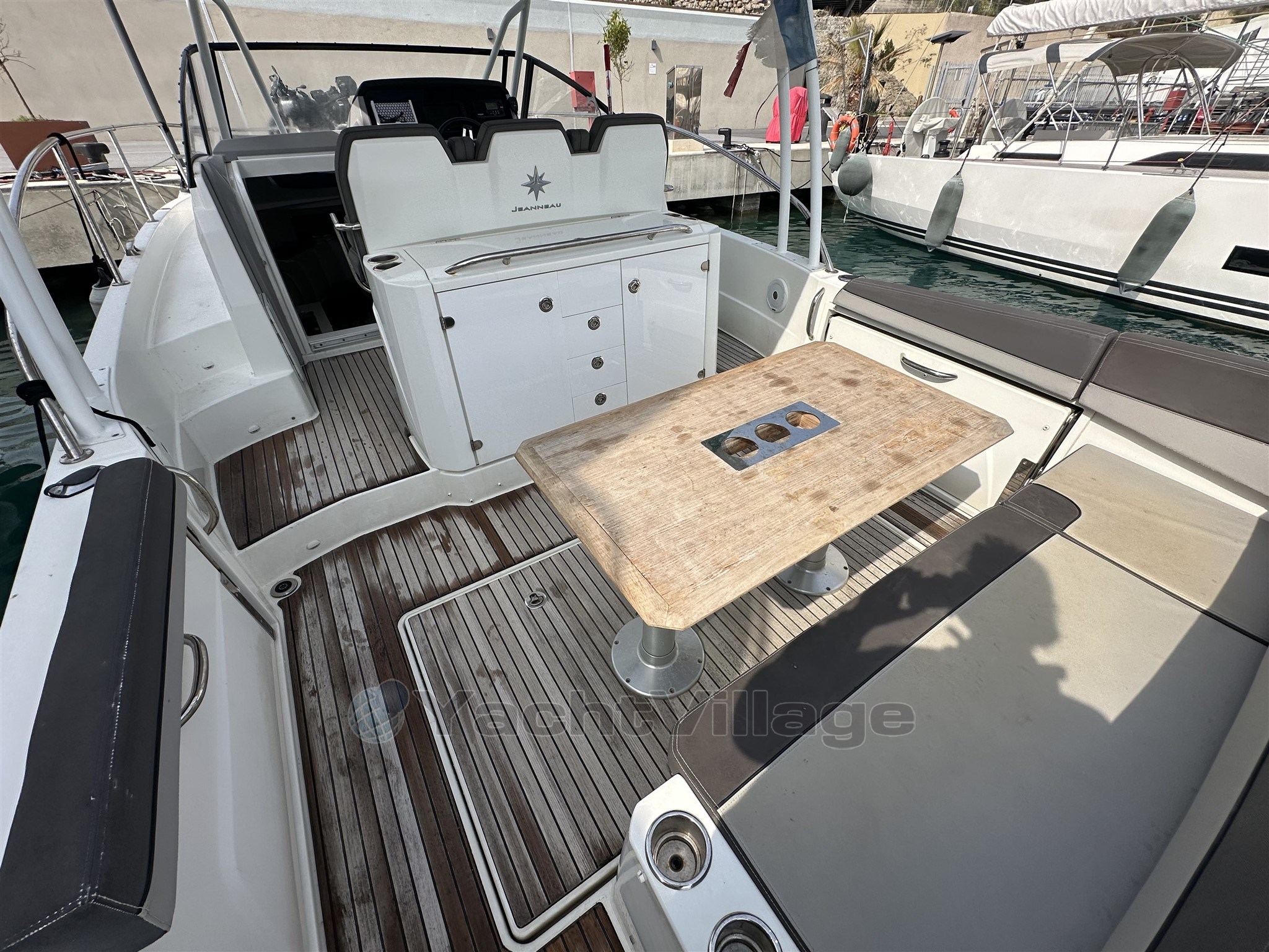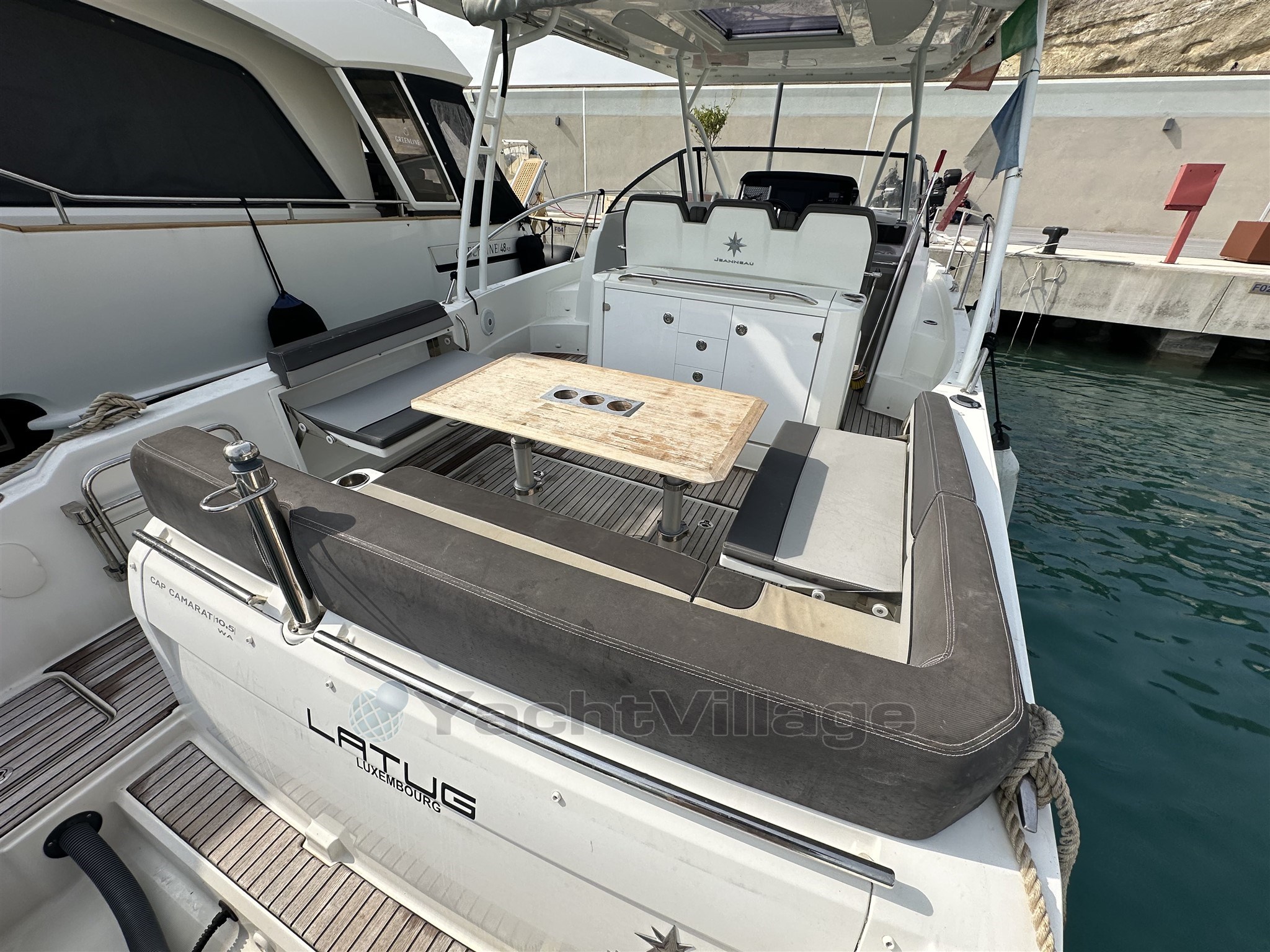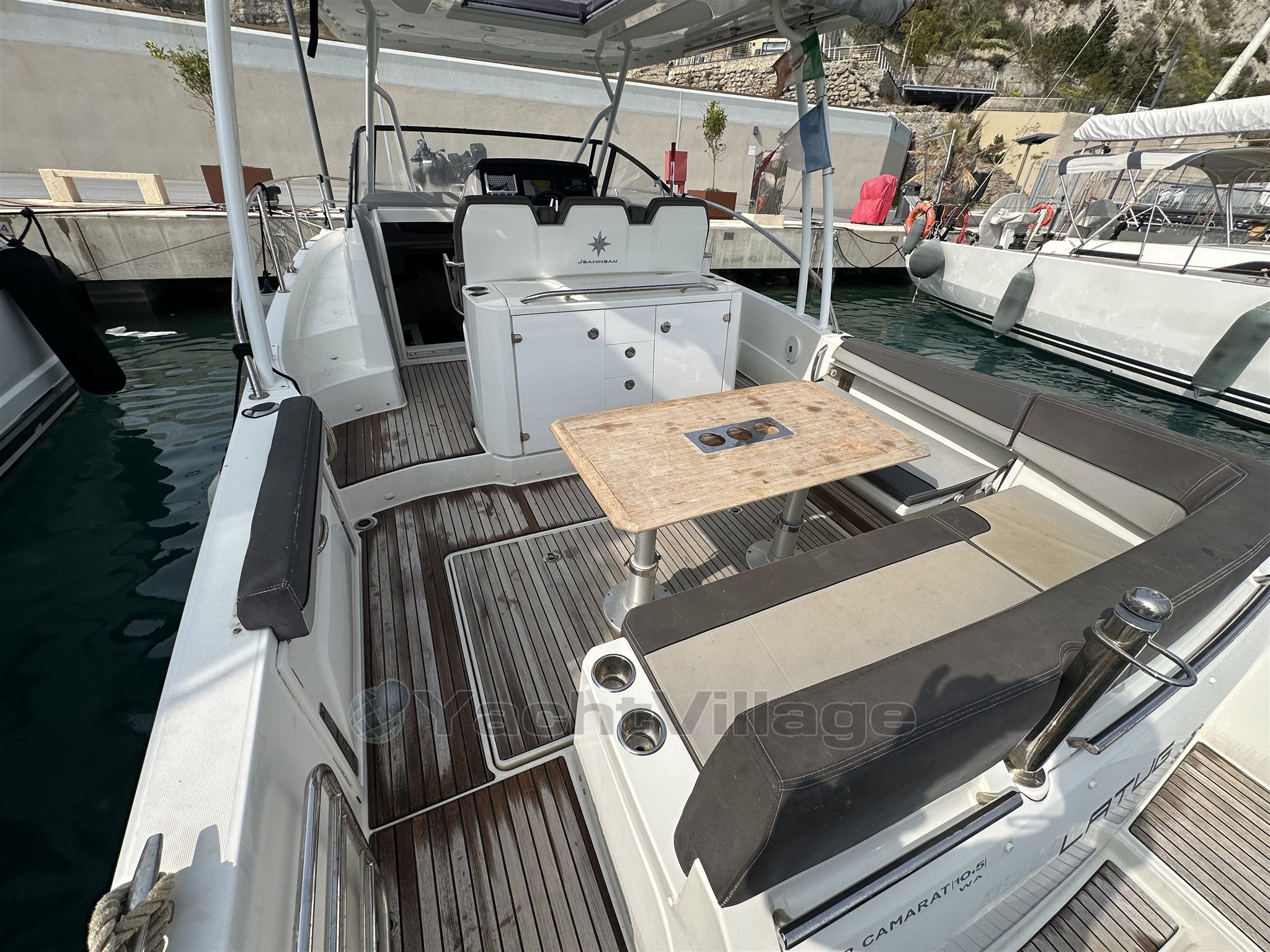 Le cockpit spacieux et convivial est parfaitement conçu pour profiter pleinement des sorties en mer. Il dispose de larges bains de soleil à l’avant et à l’arrière, ainsi que de tauds de soleil avant et arrière permettant de profiter du bateau dans toutes les conditions. Le bateau est également équipé de flaps pour optimiser la navigation ainsi que d’un propulseur d’étrave facilitant les manœuvres au port.