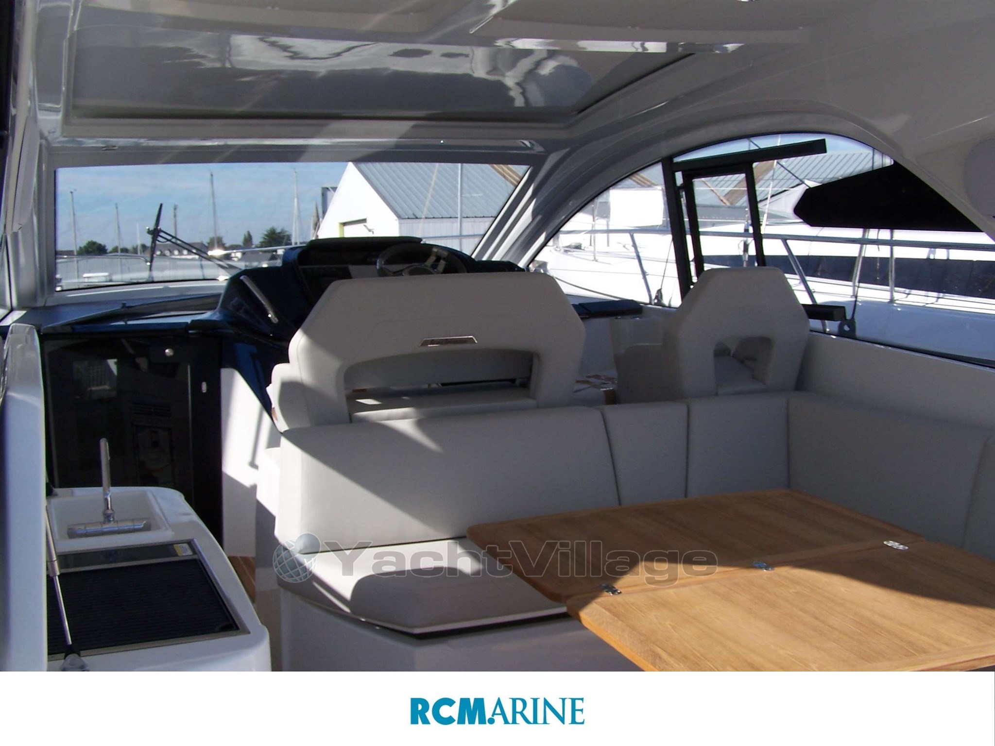 Un équpement complet pour un meilleur confort de navigation : Finition confort, Pack ambiance, Pack premium, fermeture arrière de cockpit, bain de soleil avant et arrière, télévision dans carré, frigo cuisine et cockpit, icemaker.