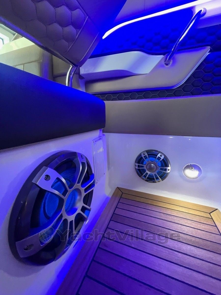 - Premium Sound System Fusion Apollo RA770 flush recessed in the cockpit with additional remote control on the stern sun loungerFusion MS-NRX 300, 6 x Fusion 6.5 inch marine speaker with subwoofer and Fusion Amplifier 5 channel amplifier with 1600 watts, of which 2 x Fusion Mariene speaker 6.5 on the bathing platform,