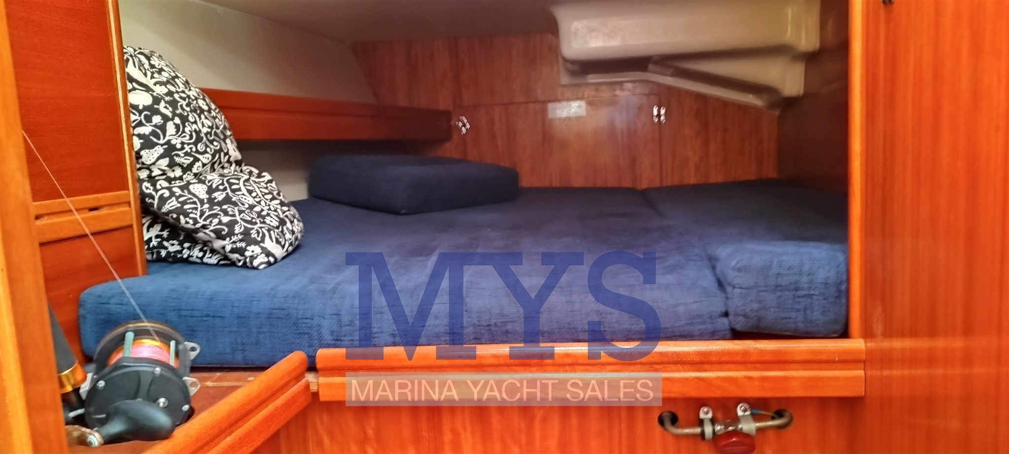 INTÉRIEUR : 3 cabines, 1 WC. Cabine principale avant avec lit double et bon espace de rangement Deux cabines doubles arrière spacieuses et bien éclairées La salle à manger centrale dispose de canapés confortables et d’un espace dédié à la table de carte.