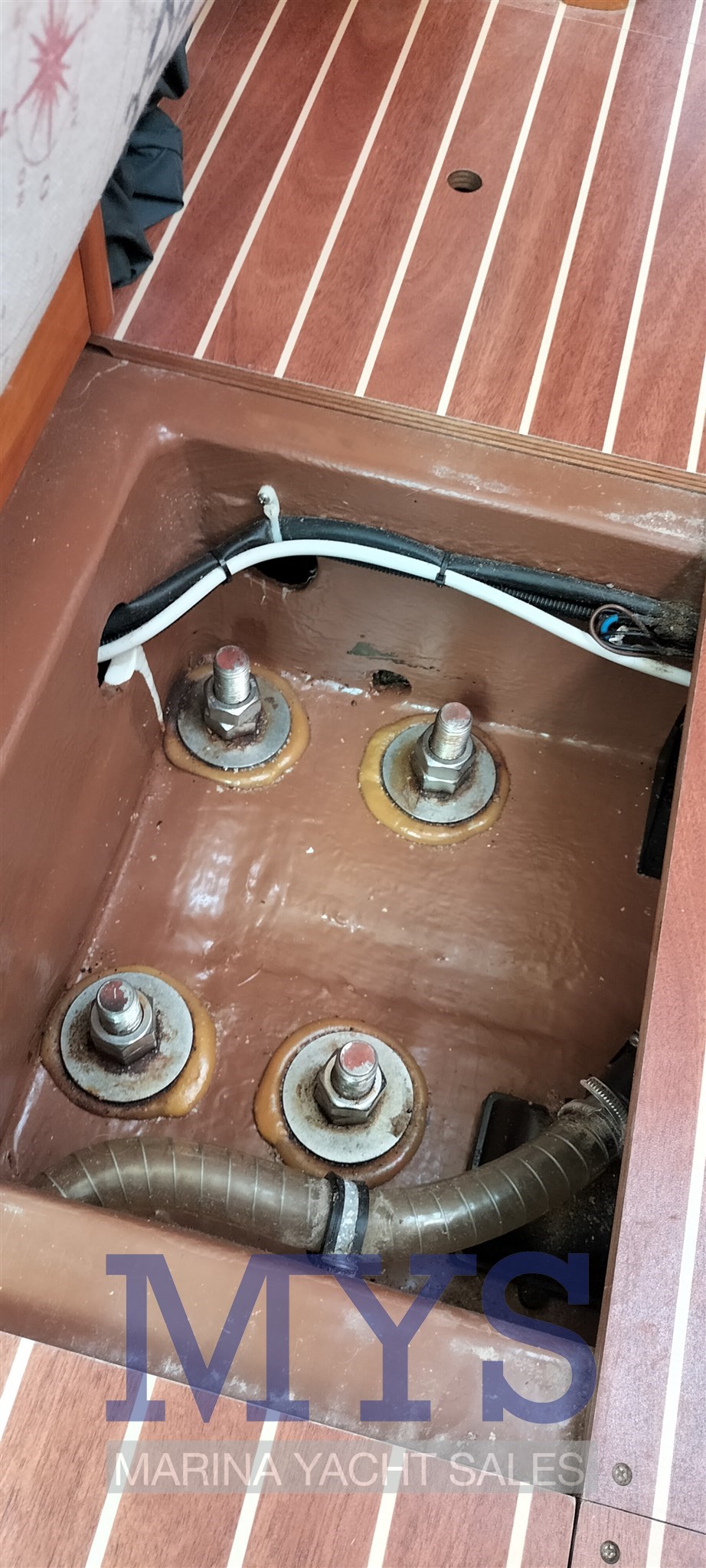 Année 2024/25 : assemblage des panneaux solaires, remplacement des batteries de service et moteur, nettoyage des réservoirs, remplacement des prises d’air traversantes et des toilettes, nouveau brassard de transmission arrière, nouveau joint d’arbre d’hélice, remplacement des raccords d’échappement du moteur, échangeur (rabatteur Volvo d’origine), révision de la pompe à eau de mer, remplacement des bagues de gouvernail, renouvellement RINA (2025), désinfection des coussins internes